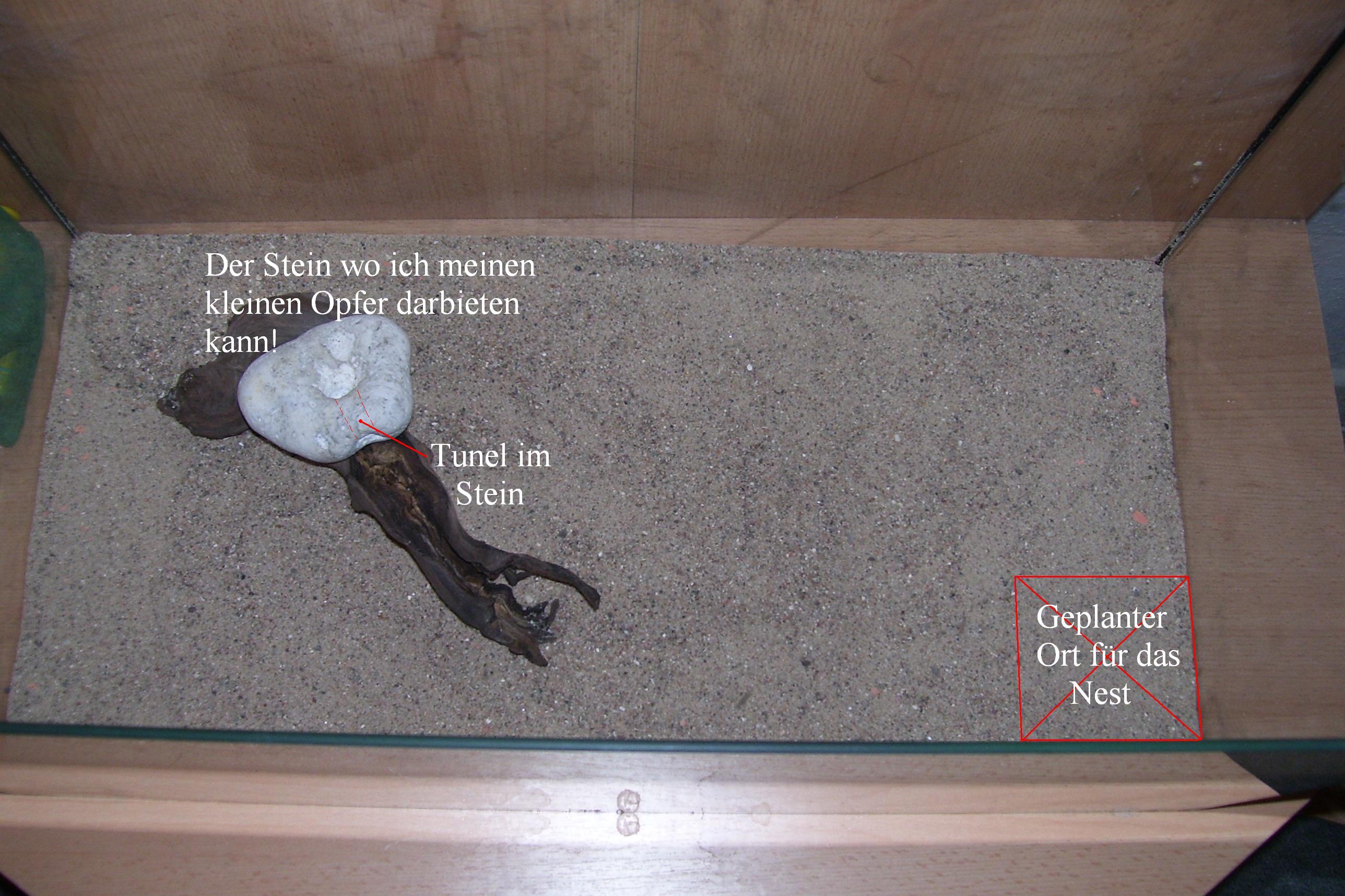 Super Bilder Azrael! Du machst dir richtig viel MĂŒhe finde ich! Ich bin auf neue Bilder echt gepannt. Wie siehts mit dem Ytong aus? Hast du ihn schon angefangen oder hab ich was verpasst? Und wie siehts mit der befeuchtung des Nestes aus?