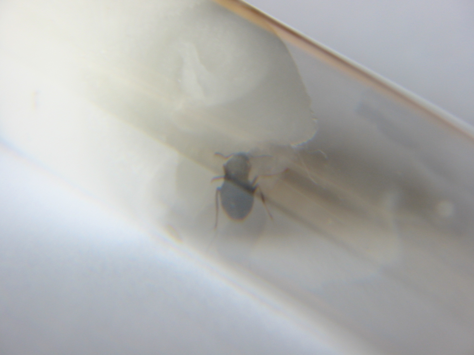 Als ich vorgestern nach Hauese gekommen bin und kurz nach meinerGyne geguckt hab sass sie anscheinend gerade zufrieden auf dem Wattebausch. Stunden später als ich nochmal nachschaute sass sie immernoch genau am selben Fleck, was mich doch etwas stutzig machte. Die Eier liegen in der Mitte des Reagenzglases - und sie sollte sich doch eigentlich darum kümmern? Auf jedenfall wollt ich wissen obs ein Problem gibt und hab das RG hochgehoben um genauer nachschauen zu können. Ich sah dass ein kleines bisschen Wasser ins RG geflossen ist welches meiner Gyne den Rückweg zu Ihren Eiern versperrte! Ich habe dann vorsichtig das Wasser raus bekommen und als der Weg wieder frei war rannte sie regelrecht zurück zu den Eiern - war unschön sie in dieser Hektik zu erleben