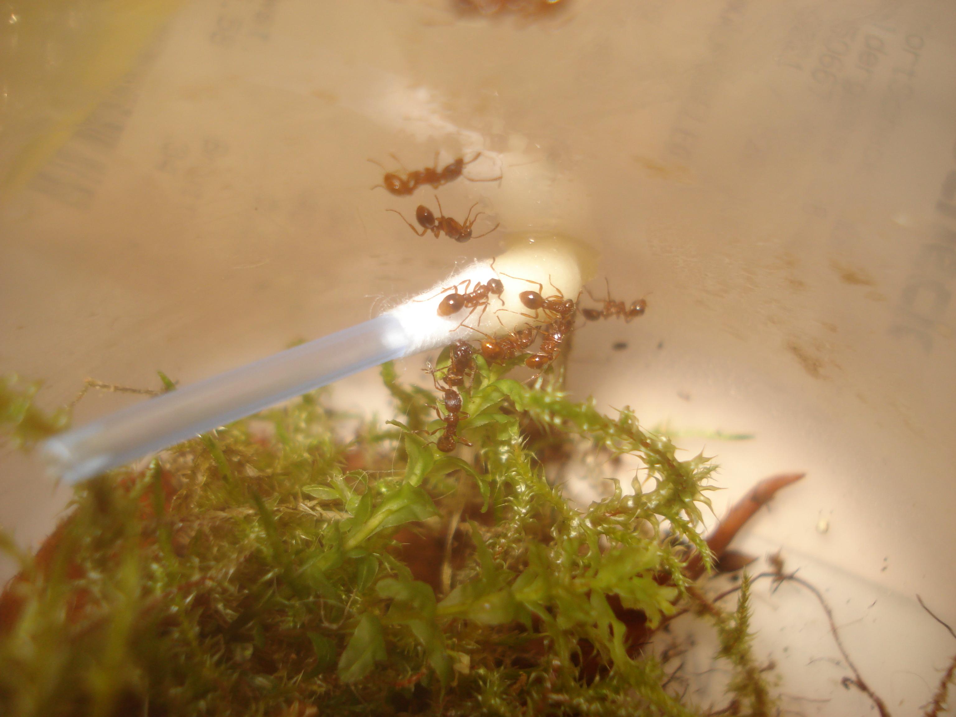 Ich bin nun im Besitz einer Ameisenkolonie, mein Kumpel hat die mir vorbeigebracht. Noch leben die in einer Tupperdose mit Frischhaltfolie mit Löchern. Aber mein Formicarium ist schon auf dem Weg zu mir. Jetzt habe ich leider noch keine
