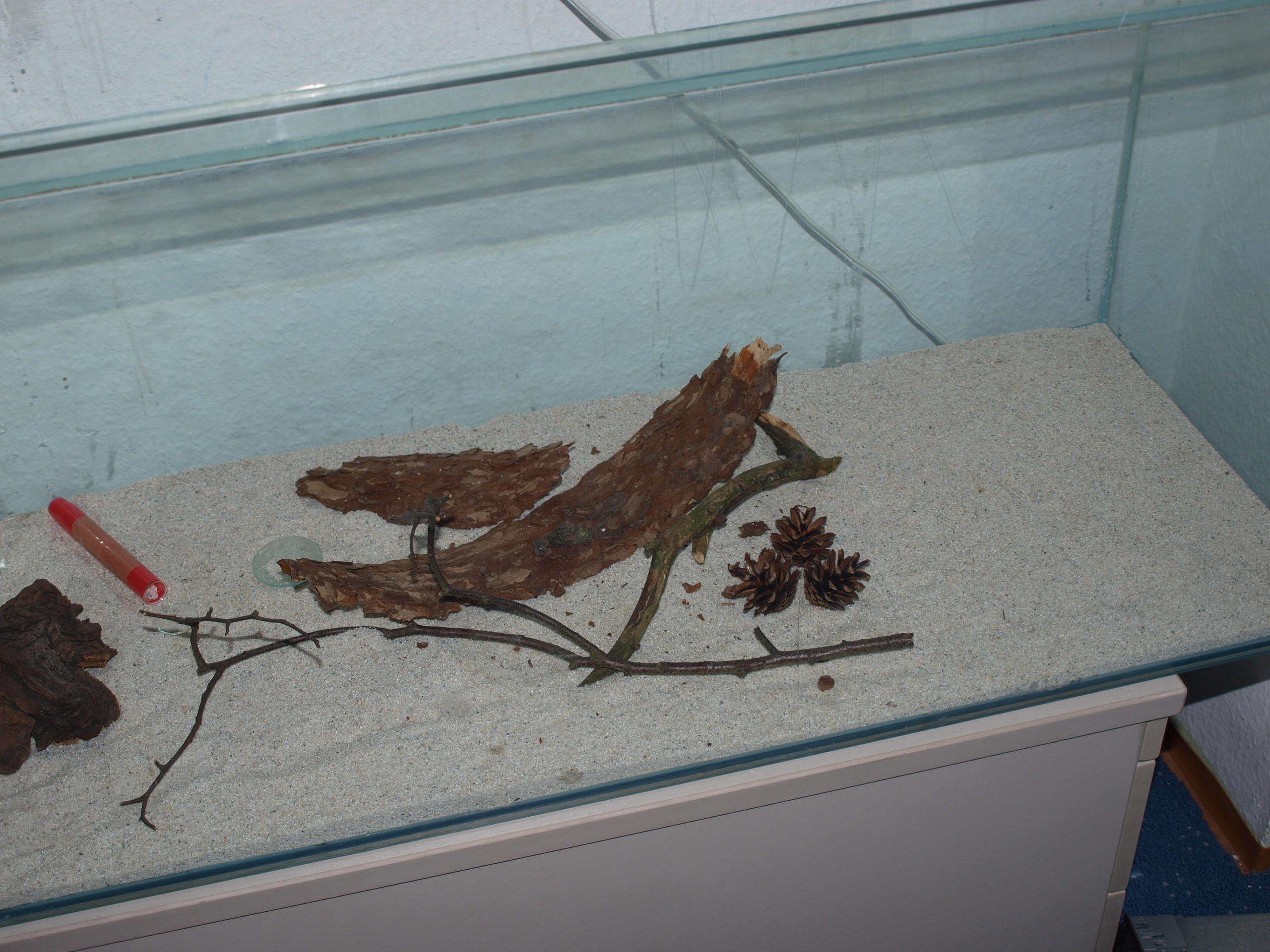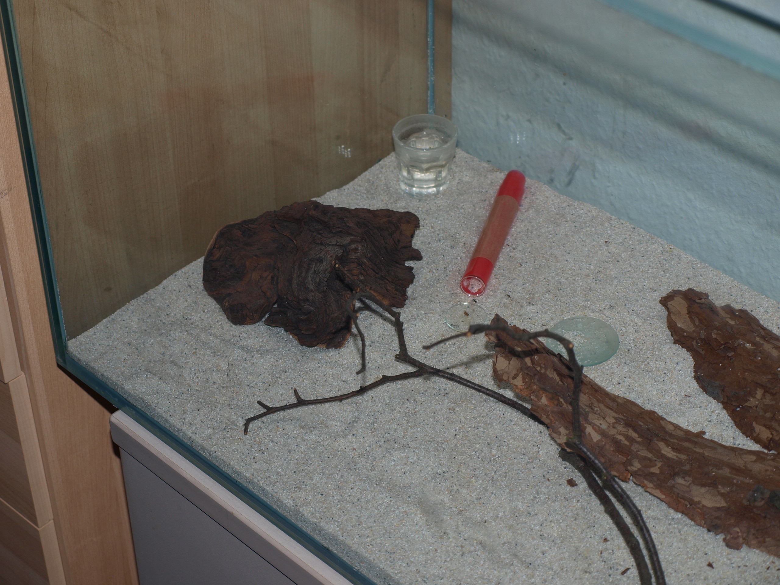 Toll ich hab jetzt eine Sand Schicht von ca. 1-2 cm da rein getan und wie gesagt mit einer mini Teigrolle ganz fest rein gepresst. Besteht dann also jetzt hohe Wahrscheinlichkeit dass sie dort zu graben beginnen?