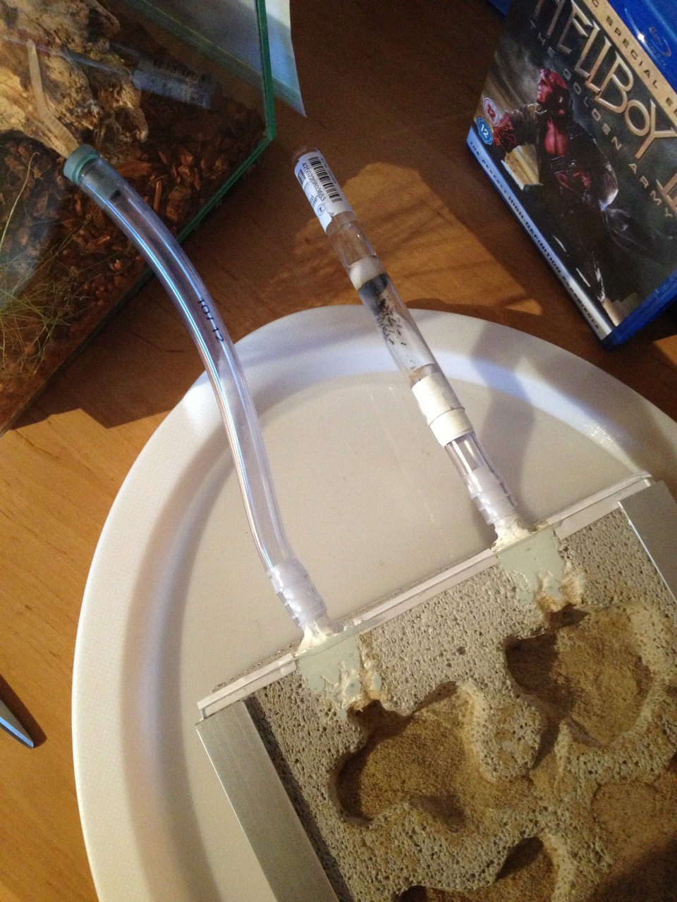 Javis hat geschrieben:Ich würde das Reagenzglas in die Arena legen mit der Öffnung ganz in der nähe zum Nesteingang.