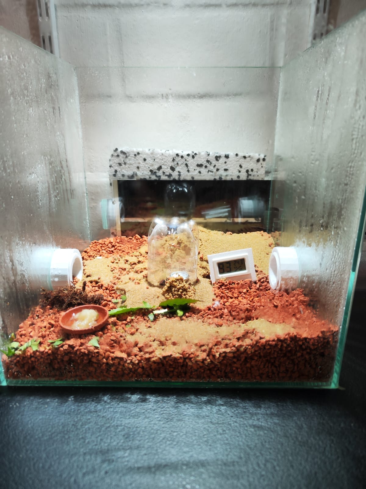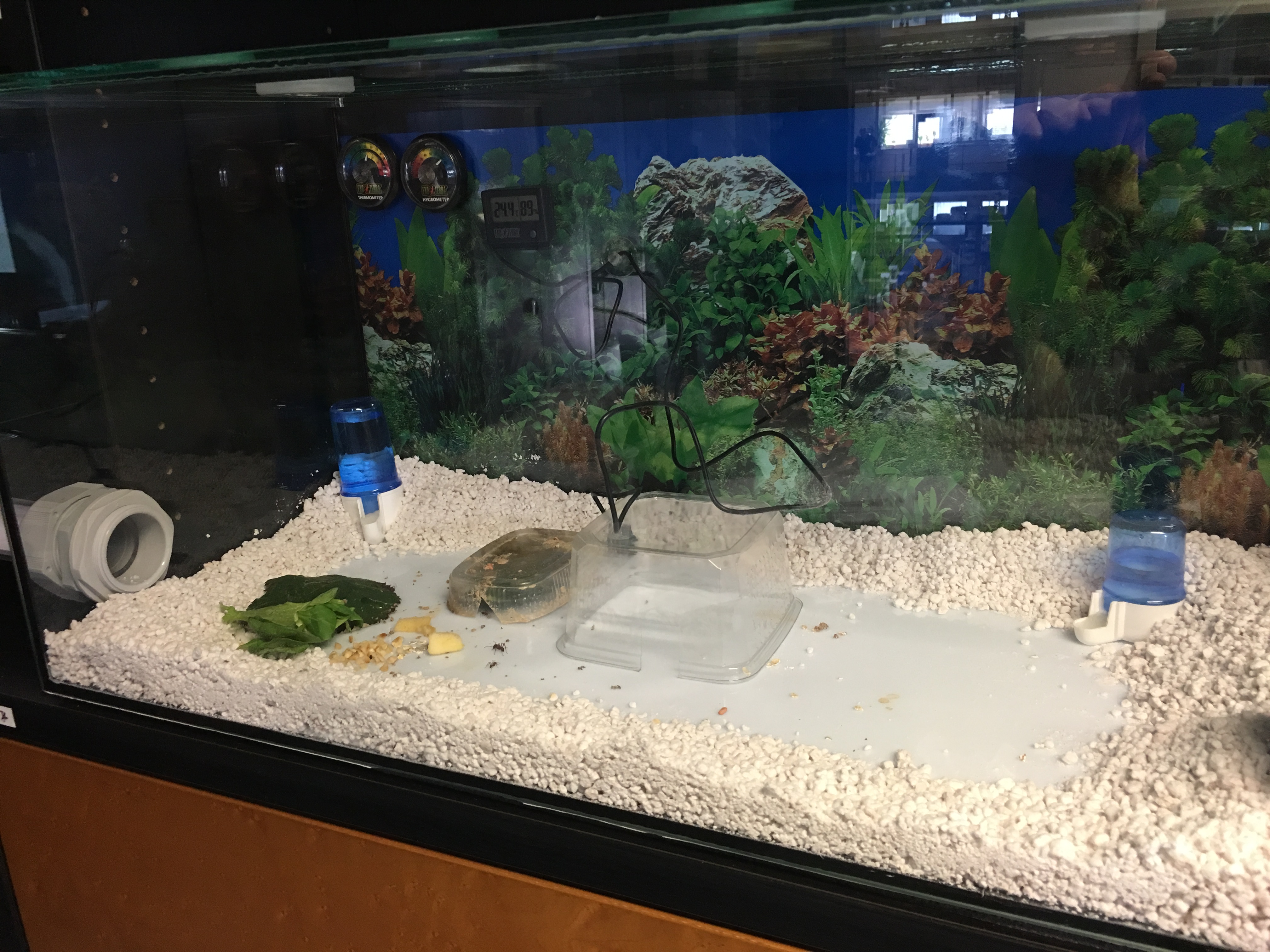 Ab da wurden nur noch die BlĂ€tter im Futterbecken ab und zu etwas besprĂŒht und es gab eine TrĂ€nke in einem separaten Becken.