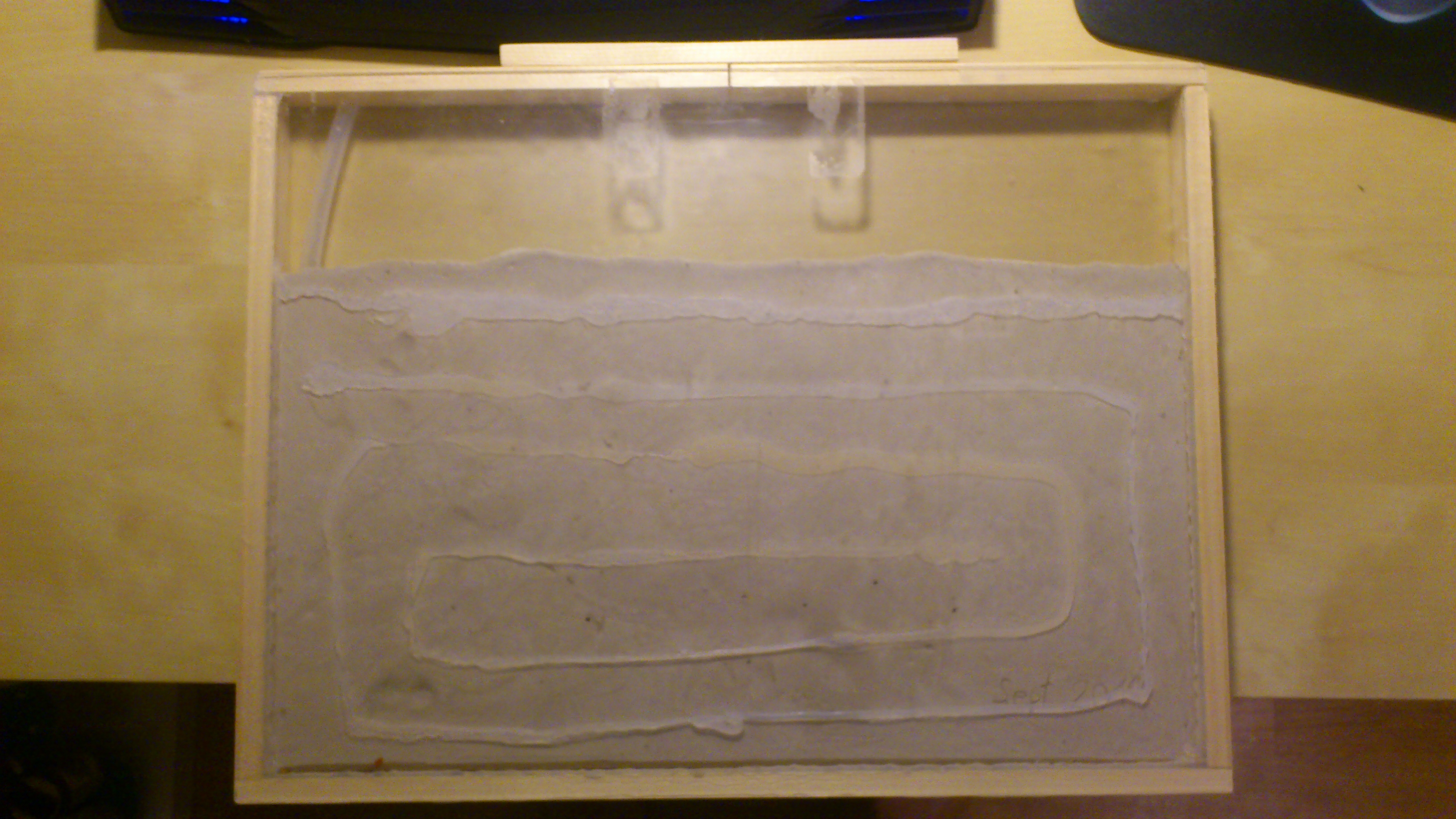 Tongranulat wurde ins Wasserreservoir gegeben und die zweite Acrylplatte draufgeklebt.