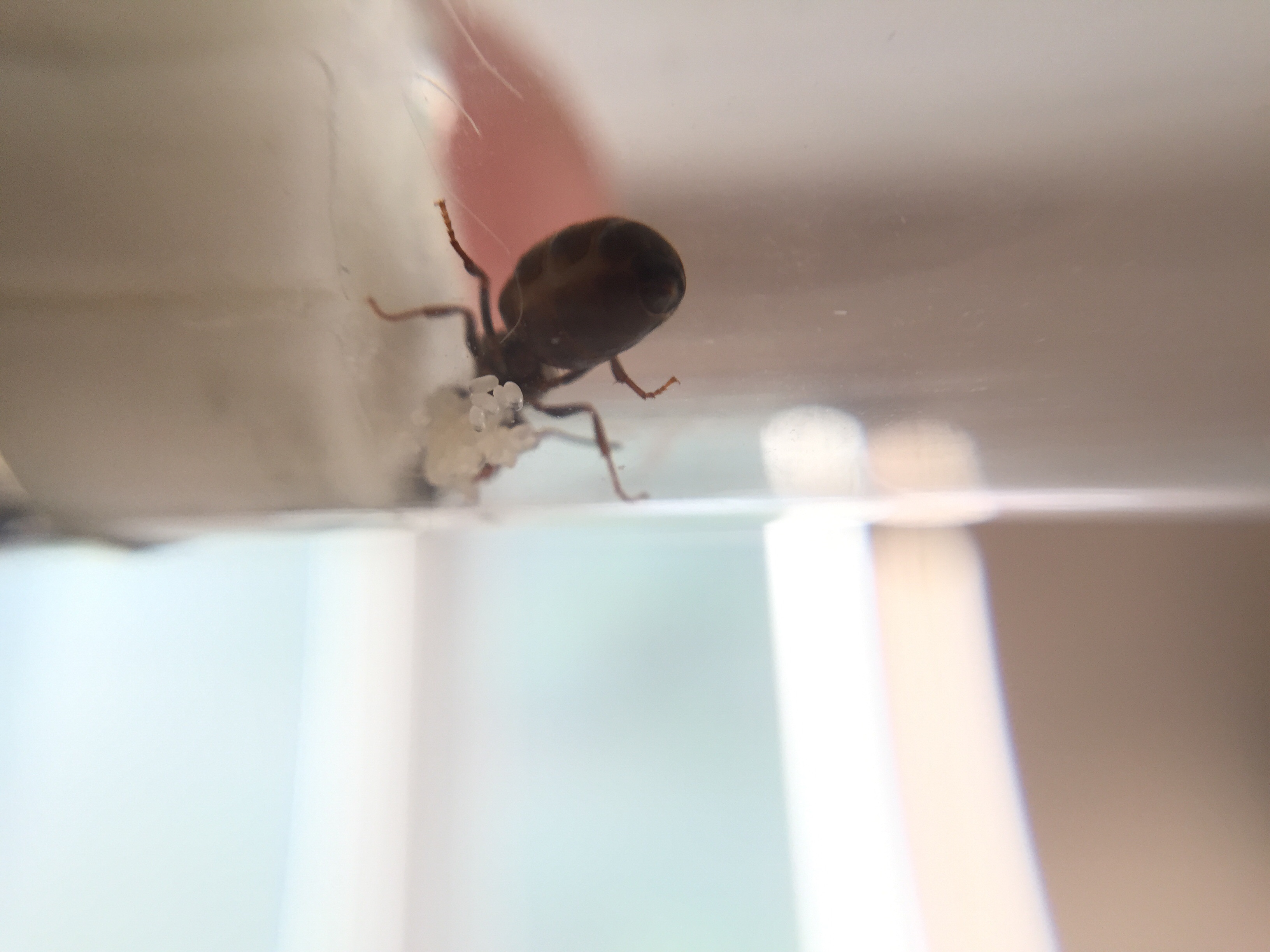 Allerdings kommt da etwas dunkles an ein paar Eiern. Evtl das Maul derLarven ?