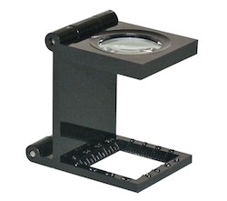 Wenn Du allerdings tote Objekte begutachten willst, empfehle ich Dir einen 10-fach Fadenzähler mit einer 20 mm Linse, damit kannst Du richtig schöne Details erkennen! So sieht das Ding aus: