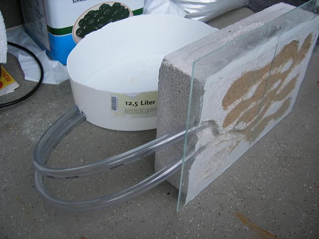 Die Schläuche sind noch nicht fertig befestigt, wollte nur, dass man sieht wie es einmal aussehen wird. Die arena ist auch noch nicht fertig, die wird noch mit Kleber bestrichen, also der Boden und dann mit Sand bestreut.