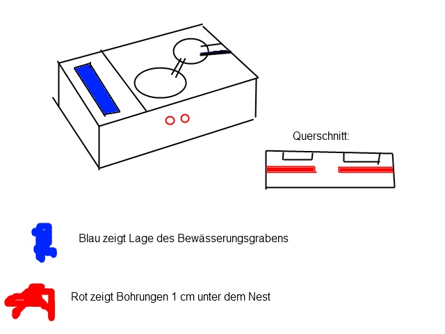 Man sollte sich zuerst entscheiden ob der Ytong von oben per Wasser-"loch"/-graben befeuchtet wird oder ob er in Wasser stehen soll.