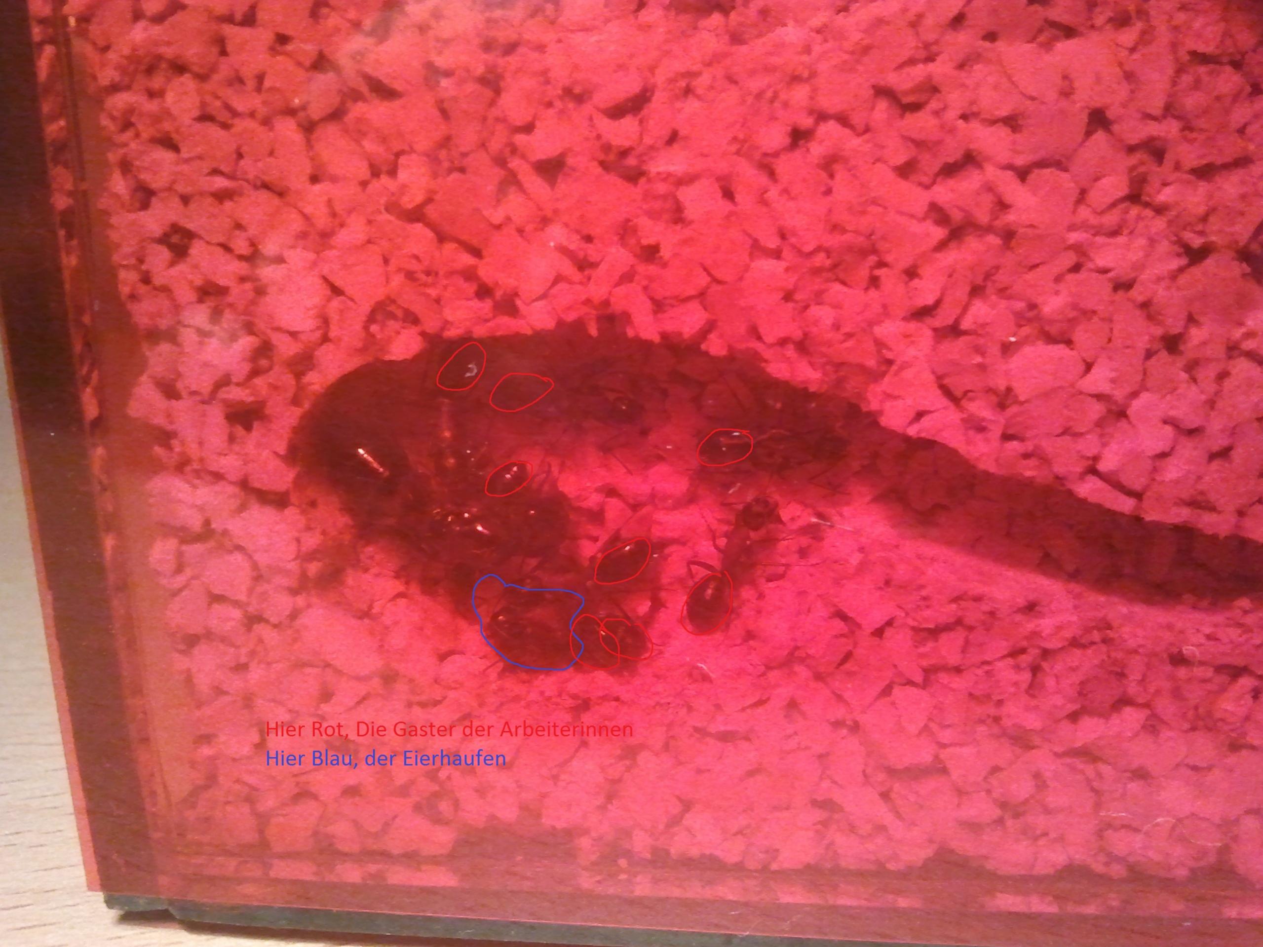 Seither sitzen die Ameisen fast ausschlieĂlich im Nest, seit ĂŒber einer Woche keine Proteinaufnahme und auch am Honig habe ich in der Zeit nur ein einziges mal eine Arbeiterin entdeckt.