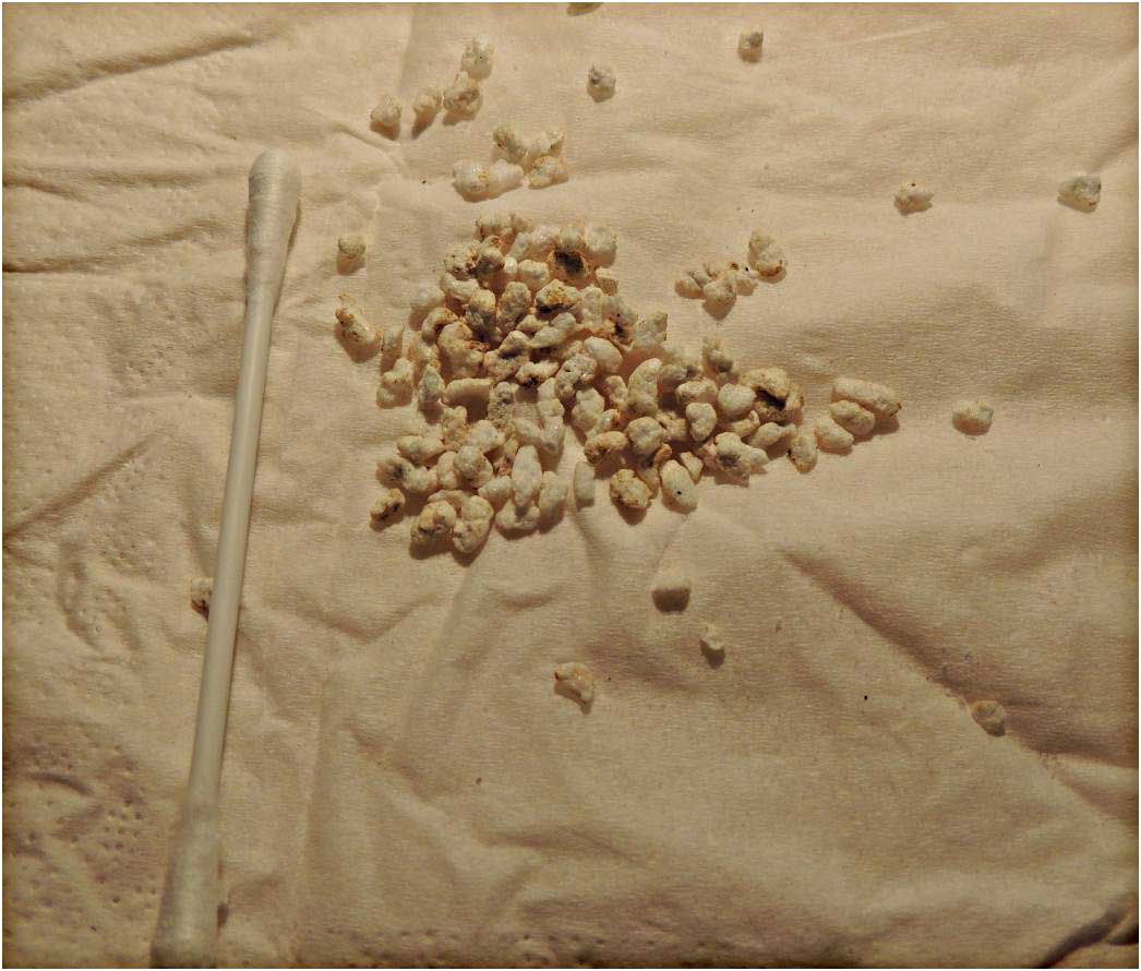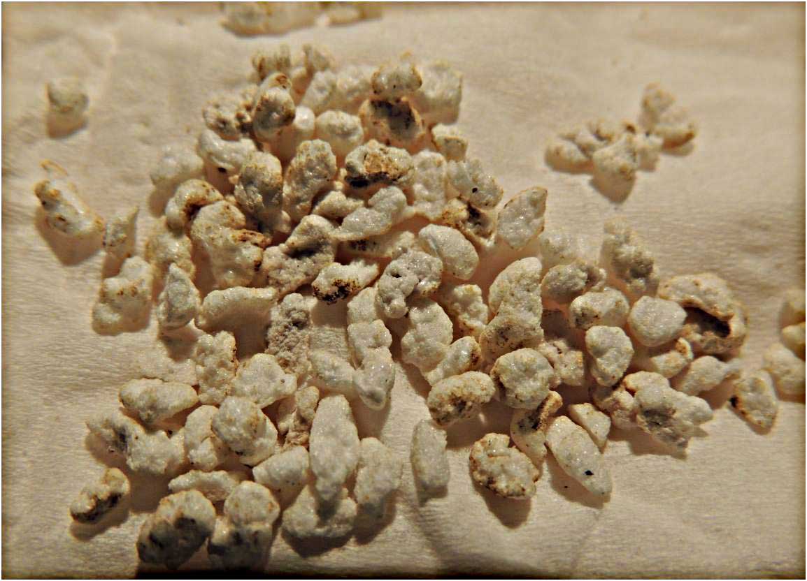 Ach was rede ich, es ist wie Styropor nur dass es klebt bei mir ist es in der gröĂe von 2 mm bis hin zu 8 mm groĂe klumpen...