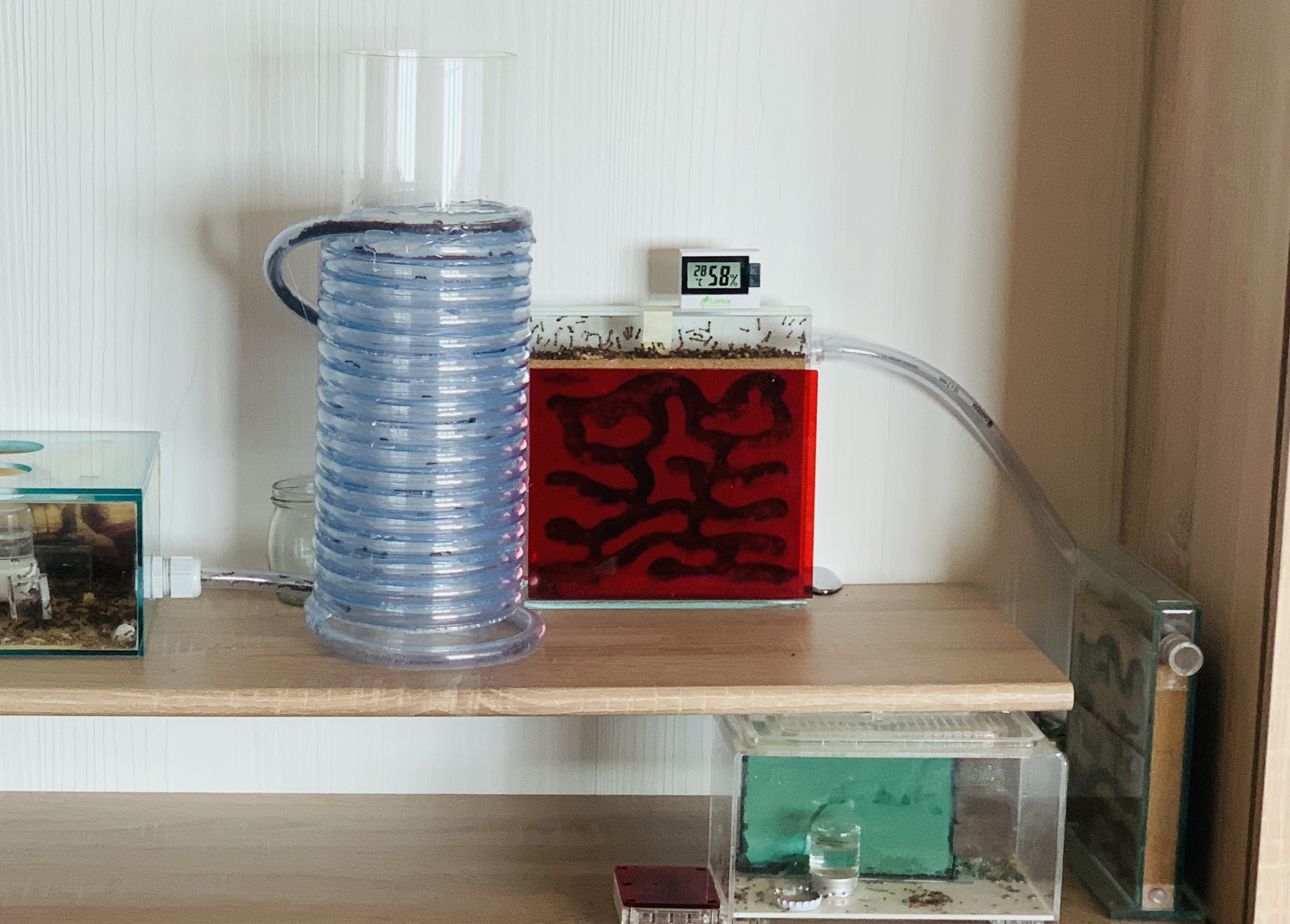 Mein Schneckenturm hat einen Schlauch 10x2 mm und ist ca 8 Meter lang ohne BelĂĽftung und meine Camponotus nicobarensis nutzen ihn sehr gut und es ist die einzige Verbindung zwischen Arena und Nest!