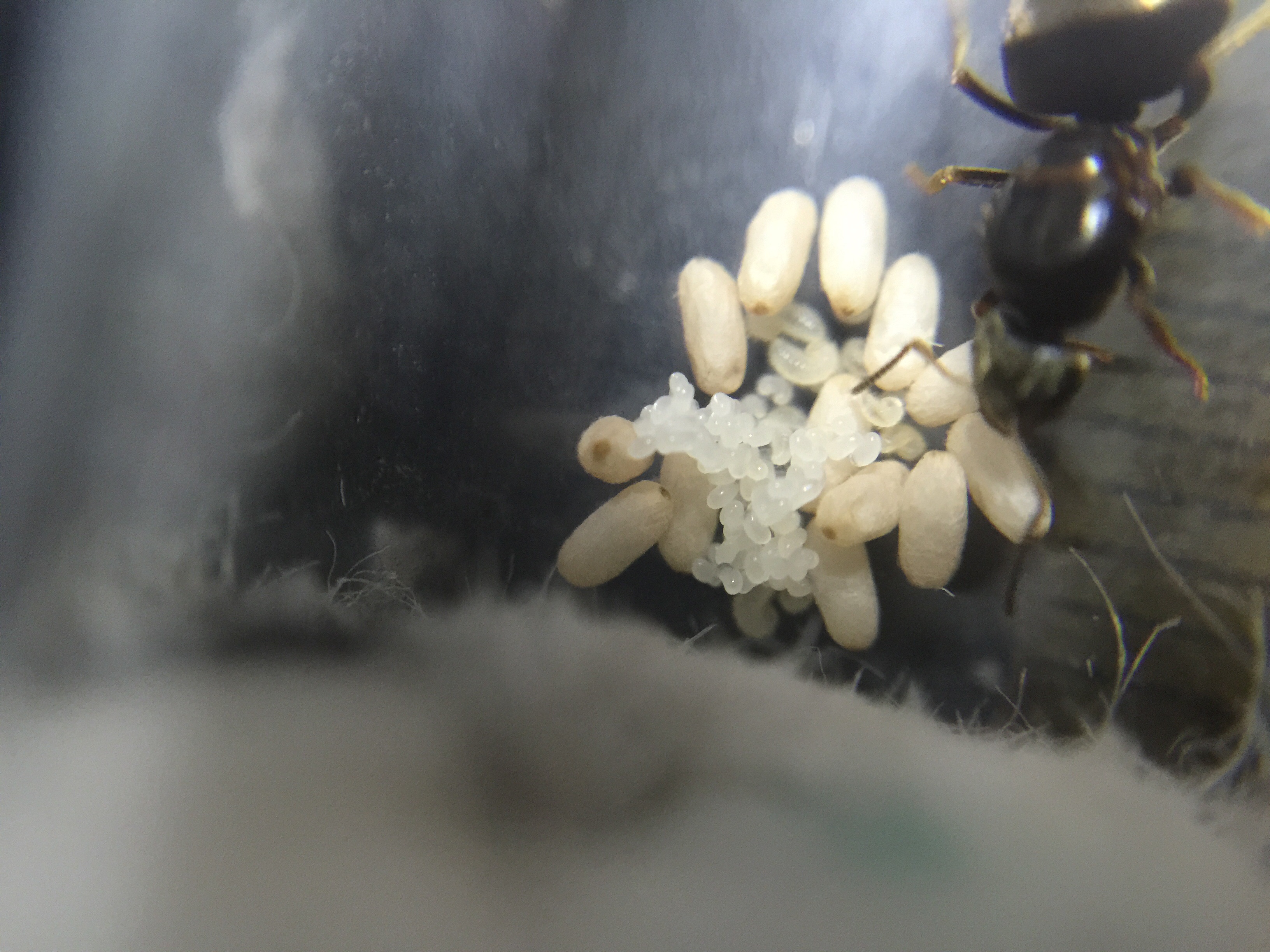 Bei mir sind zwar die Arbeiterinnen sehr schnell geschlüpft und inzwischen auch viele (16 wie gesagt) dafür hat meine Kolonie jetzt so gut wie kaum Puppen. Bei mir gab es eine Woche lang eine "Schlupfwelle" in der pro tag 1-3 Ameisen geschlüpft sind. Momentan gibt s aber ca. 30-40 Larven die hoffentlich noch vor der Winterruhe auch zu Arbeitern werden. Kurz gefasst, meine Königin legt anscheinend Eier in Wellen.