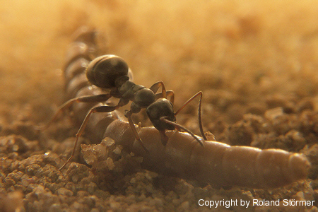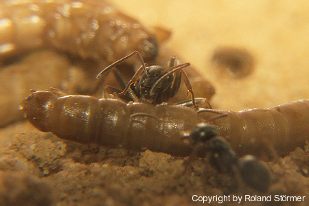 der Kopf: dunkelrot bis schwarz, Thorax, rot, Gaster, schwarz