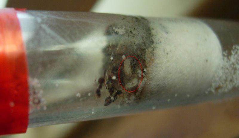 Hallo, ich habe meine Meisen ( Lasius niger) am 2.4.08 geschickt bekommen. Stand damals: 9 Arbeiter und 1 Königin , keine Eier oder Larven . Was mich damals schon gewundert hatte, das das RG "trocken" war, also kein Wasser hinter der Watte. Die Watte war auch sehr schwarz, aber ich habe hier gelesen, das man sich zuviel Sorgen um Schimmel o.Ă€. macht und es nicht weiter beachtet. Heute schaute ich mal wieder ins RG und sah 3 weiĂe "Larven ". Ich hoffe das es Larven sind, damit meine Kolonie langsam wĂ€chst. Schaut euch mal das Bild an und helft mir weiter. Vielleicht auch mal ein Statement zur Watte abgeben. Ach ja, sie sind natĂŒrlich noch nich in die Farm umgezogen:fluchen:.