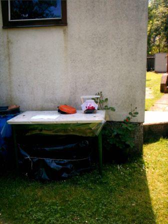 Zum Überwintern kommen sie dann ja eh auf die Terrasse oder so. Eine Alternative als "Sommer-Stellplatz" wäre die (überdachte) Terrasse. Aber da muss erst was gezimmert werden, wo man sie draufstellen könnte, damit man schön reinschauen kann. Ist denn dieser Stellplatz besser geeignet? (Foto 1)