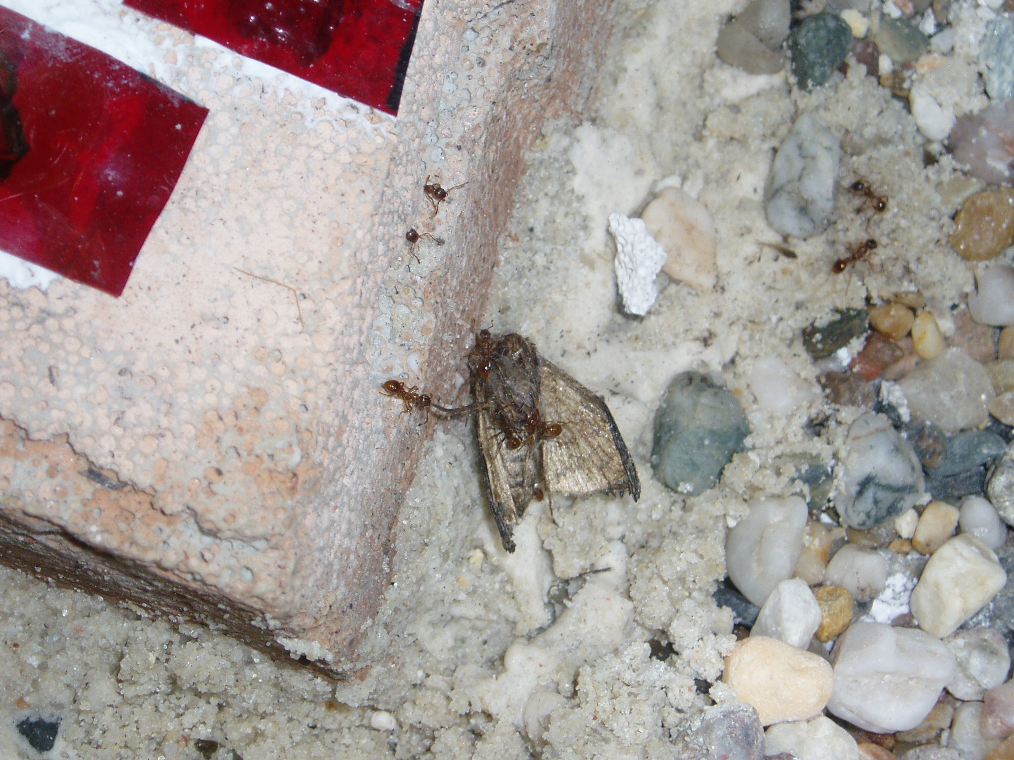 Ich hab nach einigen Tagen Waldwanderung doch Erfolg gehabt... von einer riesigen Myrmica rubra Kolonie hab ich eine Königin und etliche Arbeiterinnen mitgenommen. Das Formi (Bild 1) war schon fertig, die Meisen haben sich im ersten Moment noch im FanggefÀà um die Königin gedrĂ€ngt (Bild 2), sind dann aber ziemlich schnell doch umgezogen (Und drĂ€ngen sich jetzt auf dem einzigen cmÂČ Nest, der nicht einsehbar ist -.-). Da ich leider keine Brut erwischt hab, gabs gleich ein paar Proteine (Bild 3), die auch sofort gierig ins Nest gezerrt wurden (Bild 4). Dann fiel mir mit der Zeit auf, dass die Meisen im Vergleich zu meinen Serviformica sp., die ich vorher hatte ziemlich aktiv sind. Allerdings: wenn ich so die Hand ins Formi halt kommt mir das ziemlich warm vor dadrinnen, obwohl der Deckel eigentlich den ganzen Tag offen steht. Wenn ich Luft reinwedel, kommen ein paar Sekunden spĂ€ter viele Ameisen aus dem Bau rausgewuselt, rennen hektisch umher und wieder ein paar Sekunden spĂ€ter haben sich die meisten wieder im Bau gesammelt, aber einige gehen dann plötzlich auf Nahrungssuche und sind insgesamt aktiver und schneller unterwegs. Nach ewigem Text nun meine Frage^^: Sind die Meisen in dem Moment einfach aufgeregt durch den Luftzug (obwohl sie den ja im Bau nicht wirklich mitkriegen dĂŒrften) oder ist es den Meisen zu warm? Ist das so, dass Ameisen (speziell Myrmica rubra) in so eine Art Energiesparmodus gehn wenn es zu warm wird?