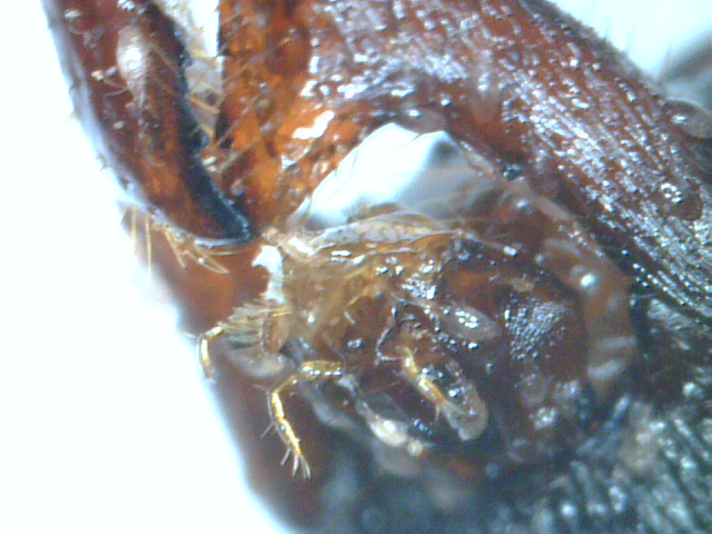 was mich ein wenig irritiert is das der Milbenbefall nur an diesem totem Tier vorhanden ist oder an den toten Heimchen,nicht aber an den lebenden Arbeiterrinnen...