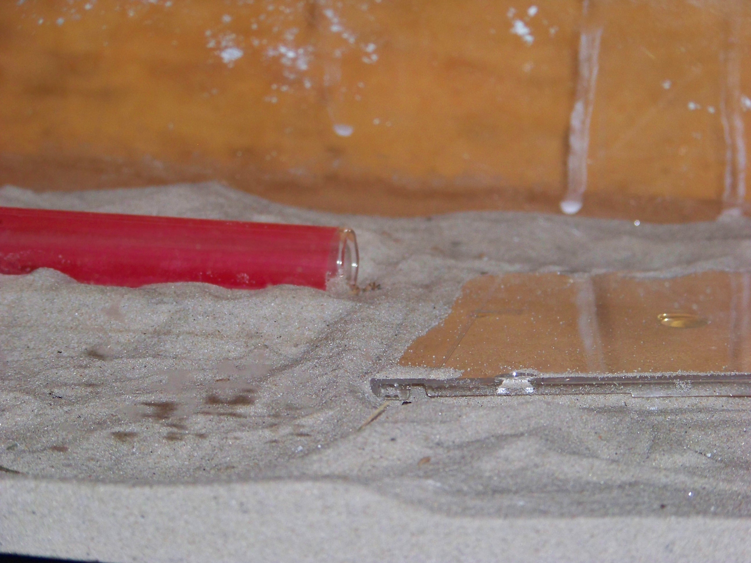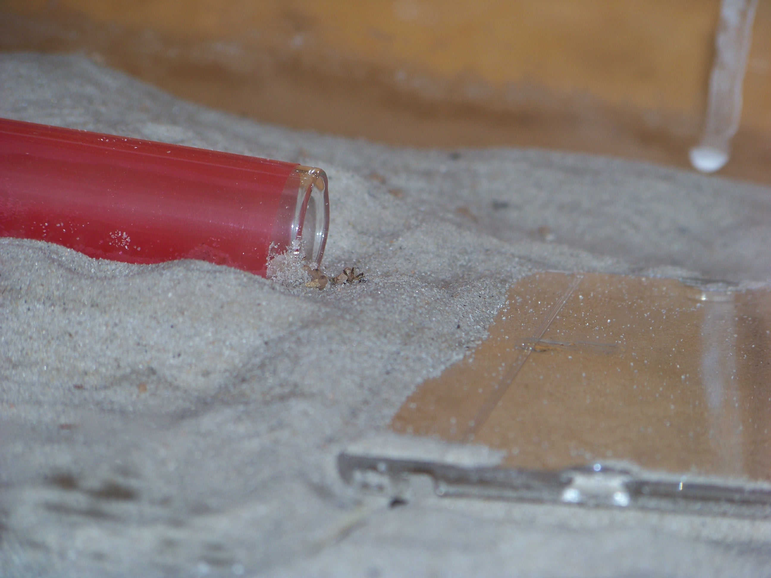 1. Der Sand ist sehr fein und ganz trocken. Kann es sein dass die Ameisen darauf wegrutschen?