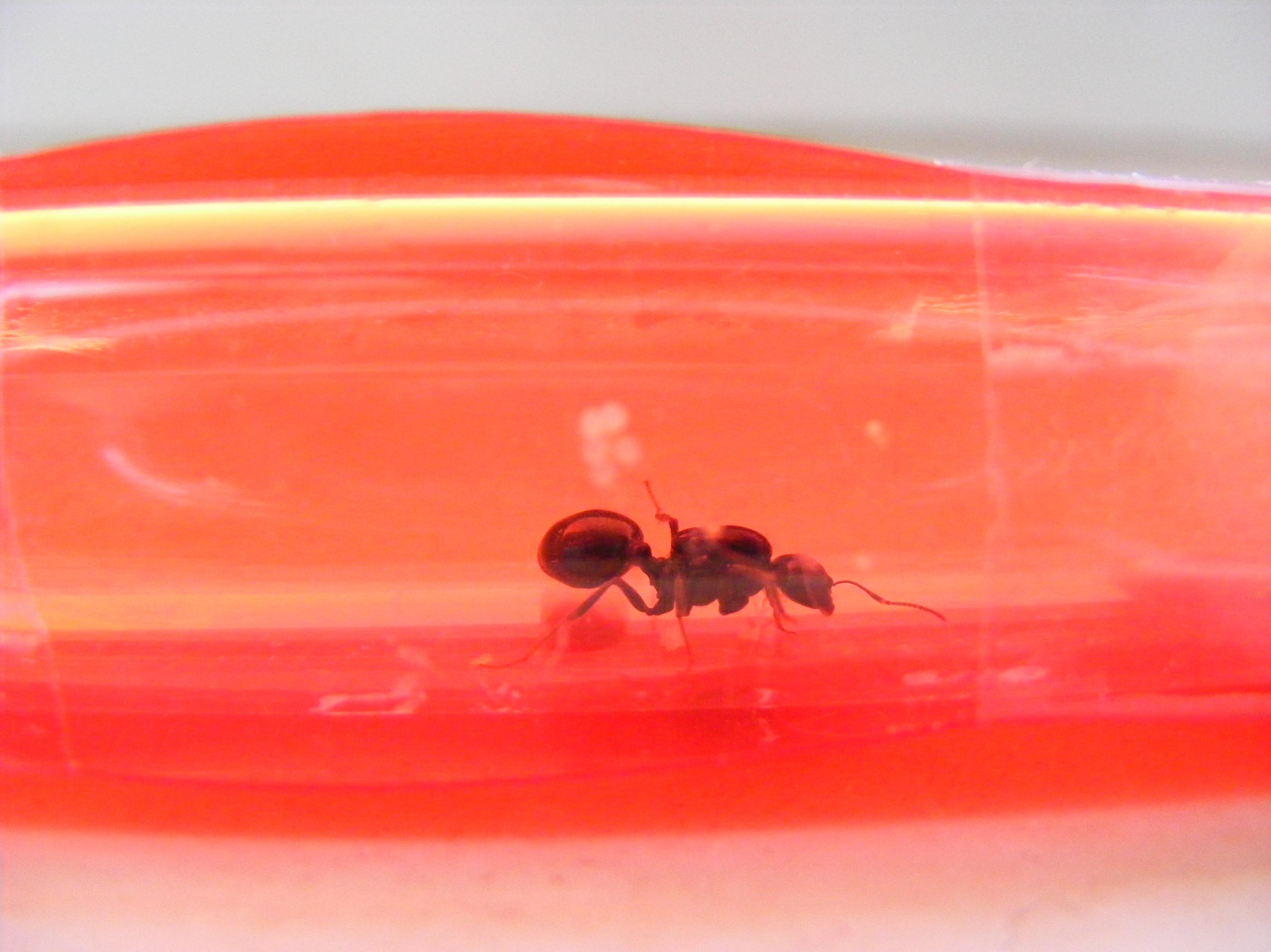 Bei der Lasius niger schlüpft die Tage die erste Arbeiterin (siehe Foto). Um diese Kolonie mache ich mir keine Sorgen. Eier und Larven sind auch zusehen.