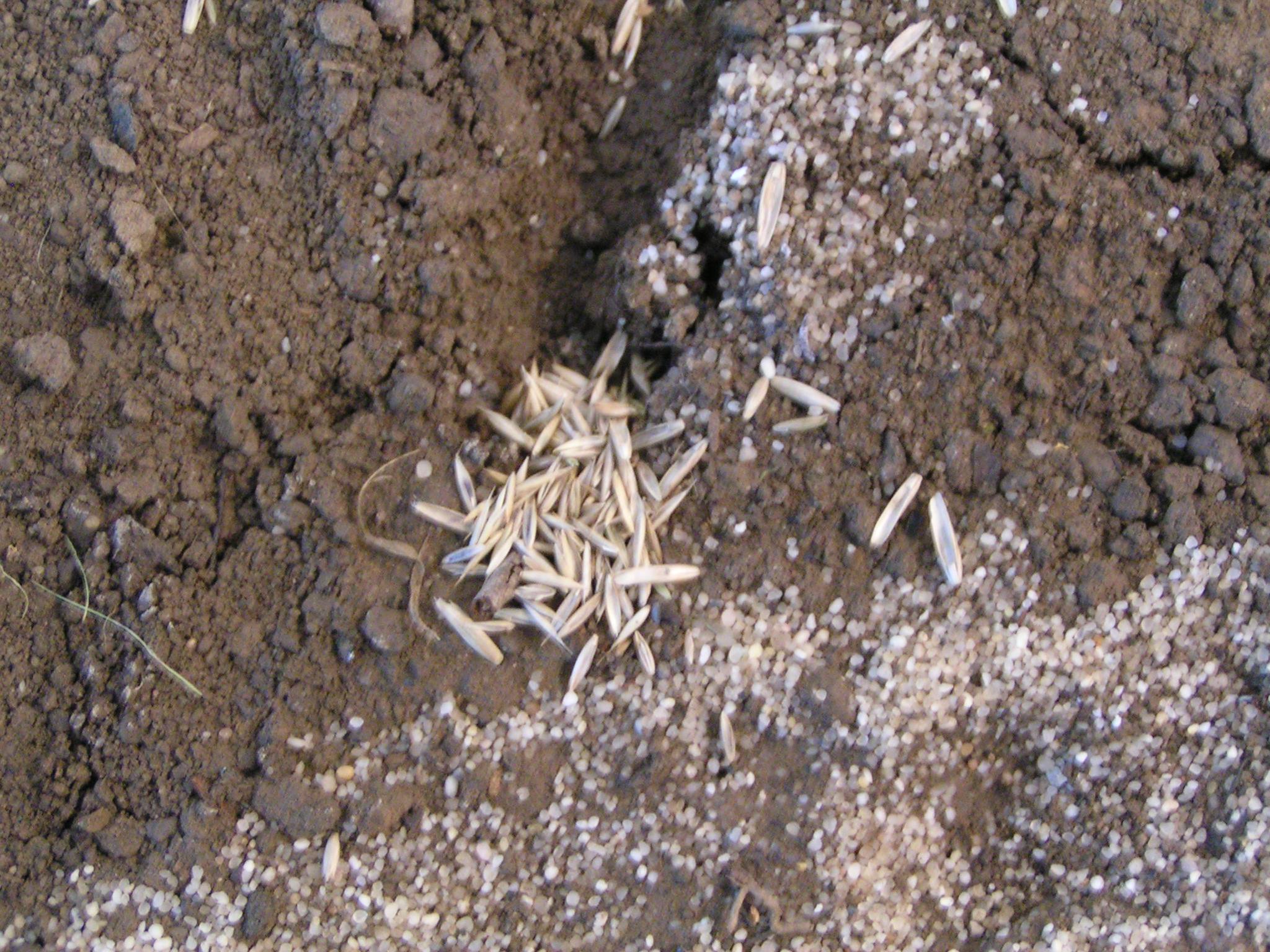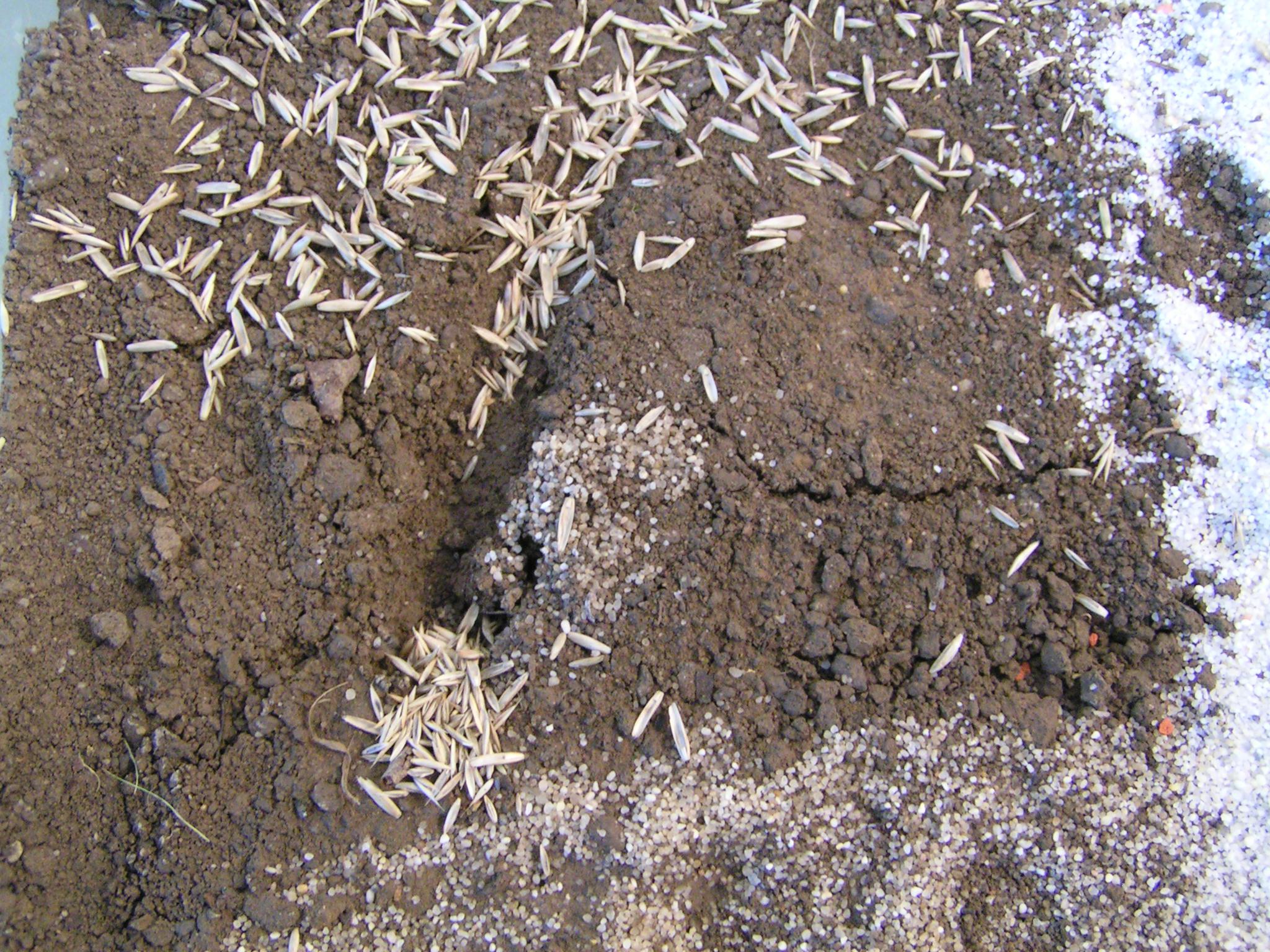 Letztens hab ich noch Rasen-Samen ĂĽber das Sand/Lehm-Gemisch gestreut, wollte mal sehen wie das so ankommt/wird.