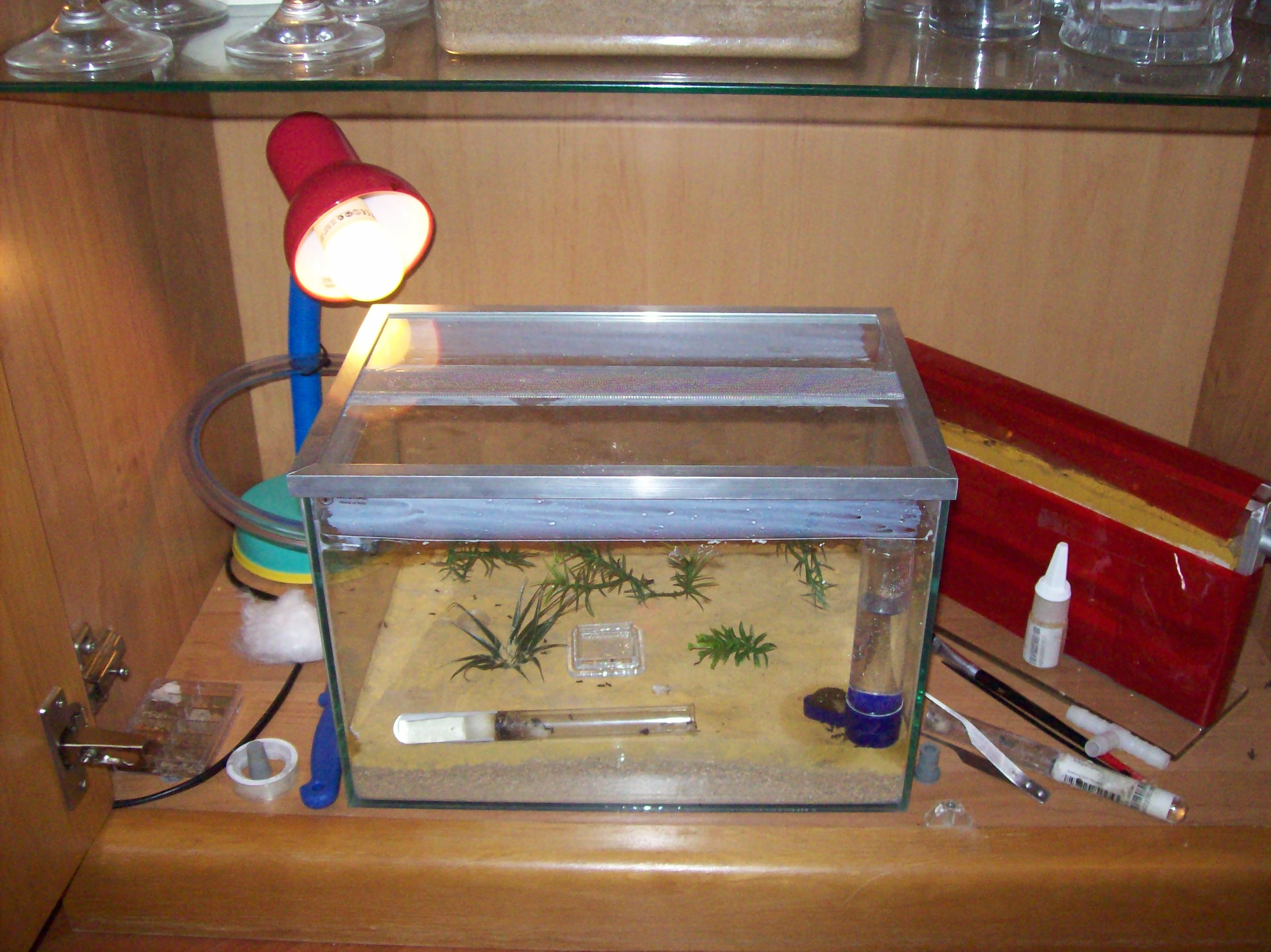 [font=Times New Roman]Zu den Haltungsbedingungen: Arena 300mm*200mm, trockener Boden mit einer Vogeltränke inkl. Schwamm und Fressnapf. Dann ein Schlauch, Innendurchmesser 10 mm, 50 cm lang. Farm feucht, so um die 60 % (die Ameisen sind schon Kräftig beim Buddeln), Größe 200mm*20mm.[/font]
