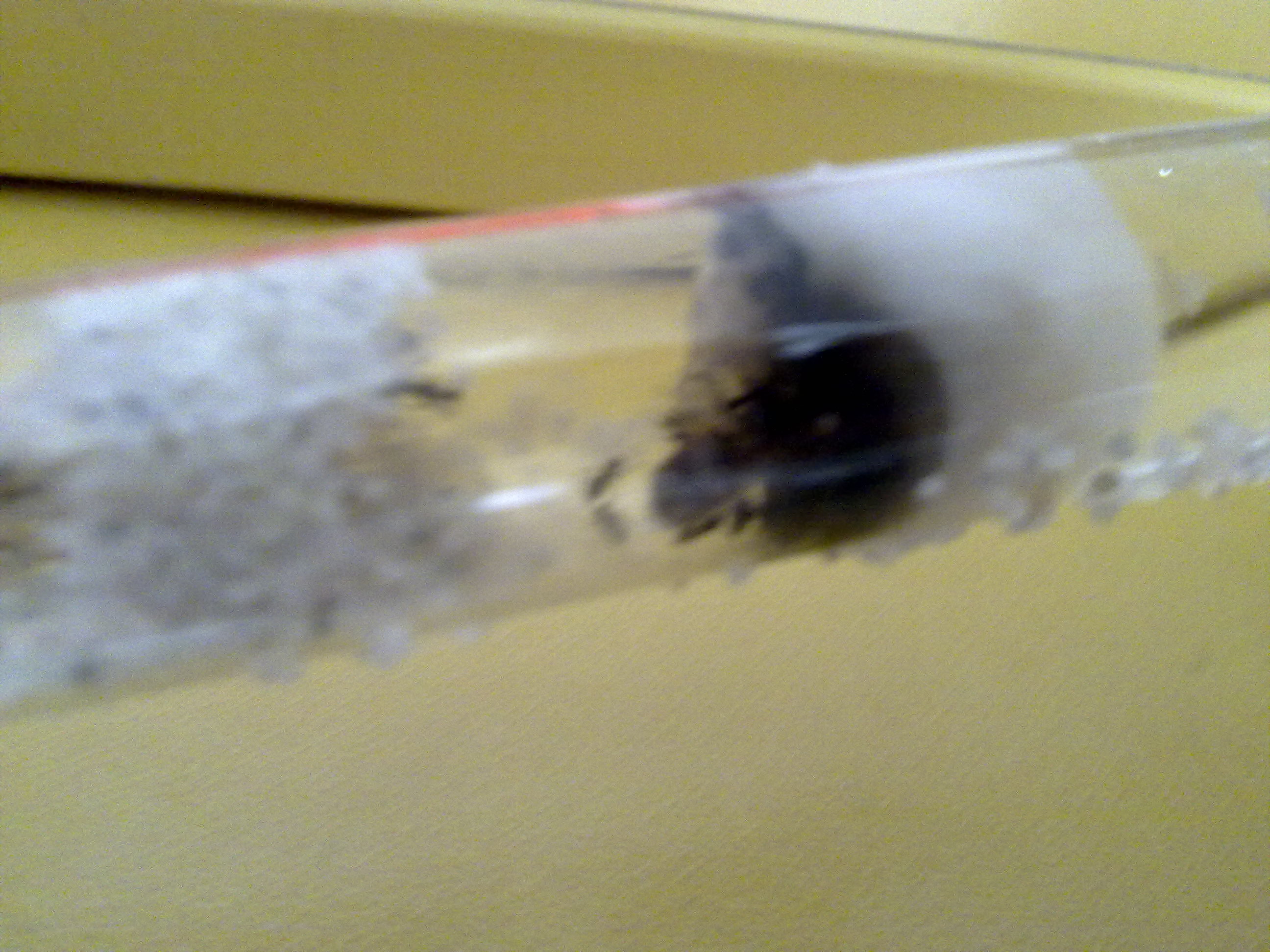 Die Kolonie lebt immer noch im Reagenzglas, allerdings habe ich das in eine Dose getan, damit ich ihnen Nahrung anbieten kann. Das klappt soweit alles ganz gut. Nun hat sich aber seit einiger Zeit Schimmel (vermutlich, Watte ist Schwarz geworden) in/an der Watte zum Wassertank gebildet. Da ich wollte, dass sie jetzt am besten noch vor der