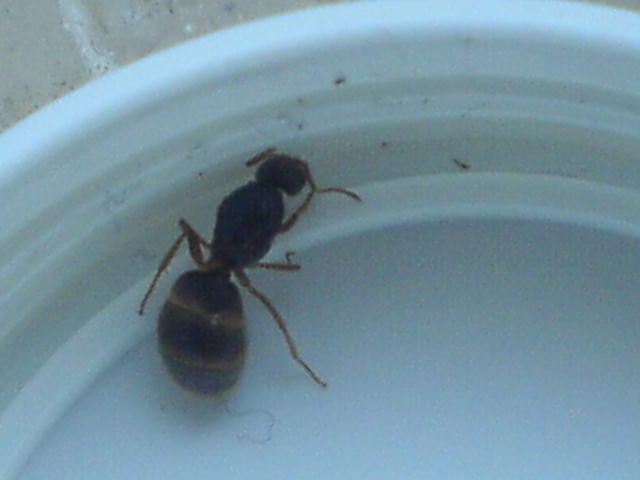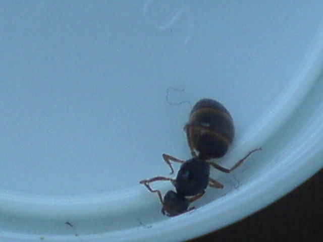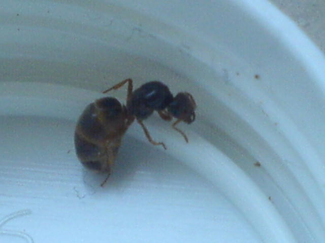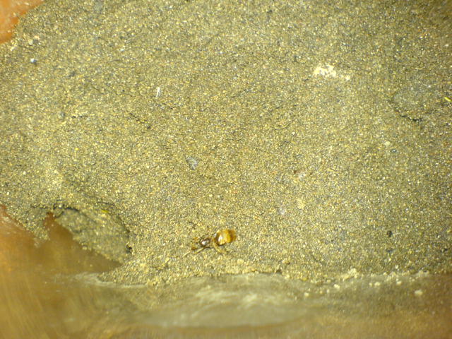 Sie sieht sehr nach Lasius flavus aus, aber es ist eigntlich jetzt nicht Schwärmzeit dieser Art. Auch dass sie so sehr physiogastrisch (dickes Hinterteil) ist erstaunt mich. So sehen bei mir die Königinnen erst aus nachdem sie so ein Jahr Arbeiterinnen haben.