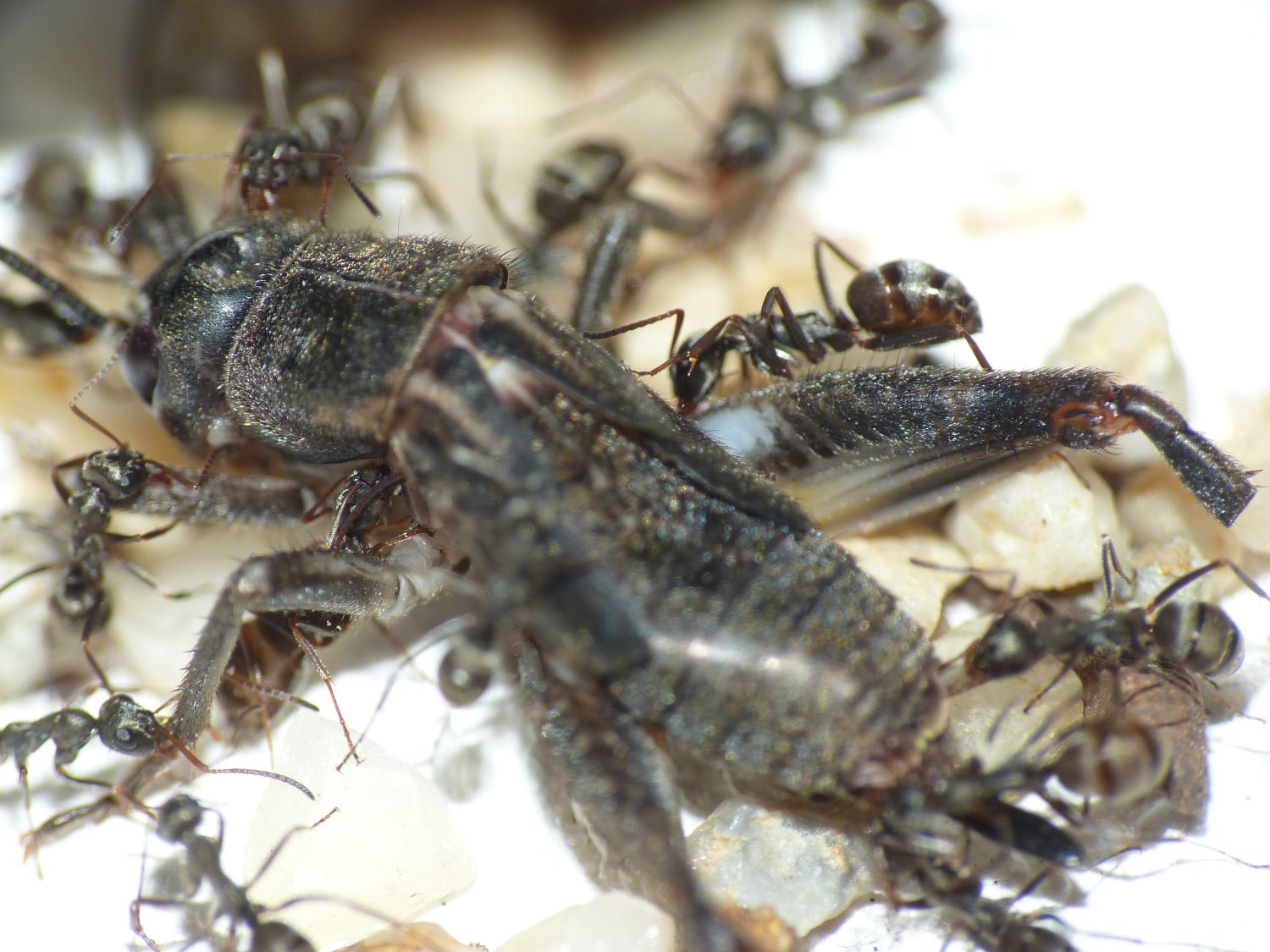 Die beiden Fragen lauten - kurz ausgedrückt: "Markieren" Ameisen ihre Beute? Testen sie vorher (aber so lange?), was sich am leichtesten abtrennen lässt?