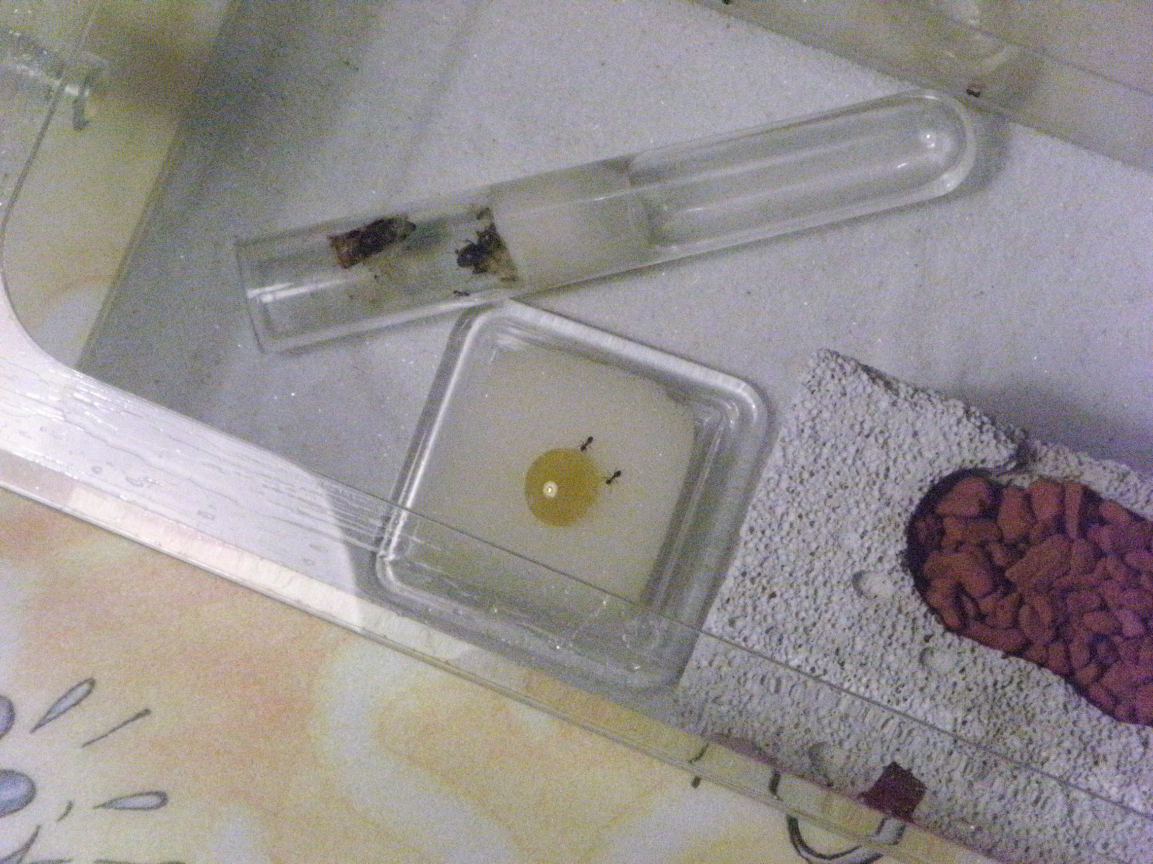 Ich sende nachher noch ein paar Fotos und Videos vom Anfang, also da, als ich sie erst gerade ins Formicarium reingetan habe, von den Zophobas und von heute.