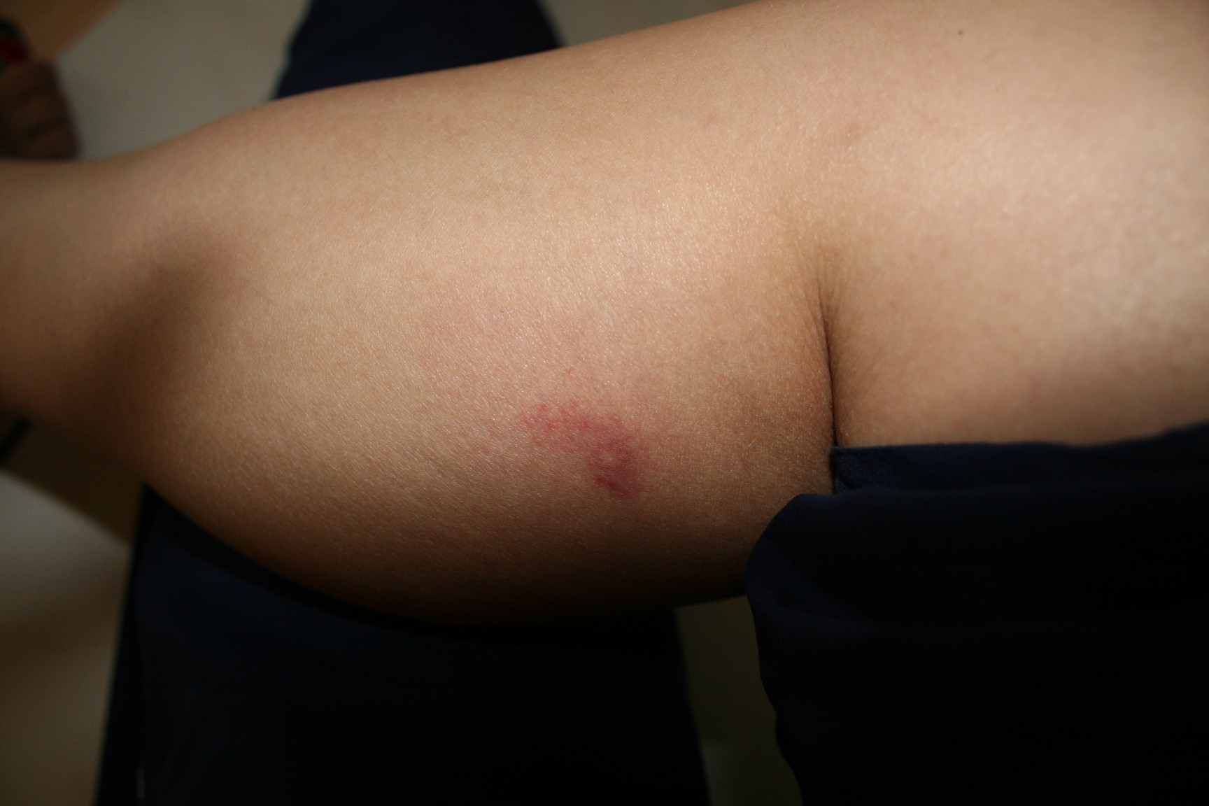 Ich wurde zwar noch nie von einer Biene oder Wespe gestochen aber ich denke, das würde ich merken? Ich habe den Moment verpasst, an dem ich gestochen oder eben, gebissen wurde. Das war nicht schmerzhaft. Erst danach hat's weh getan.
