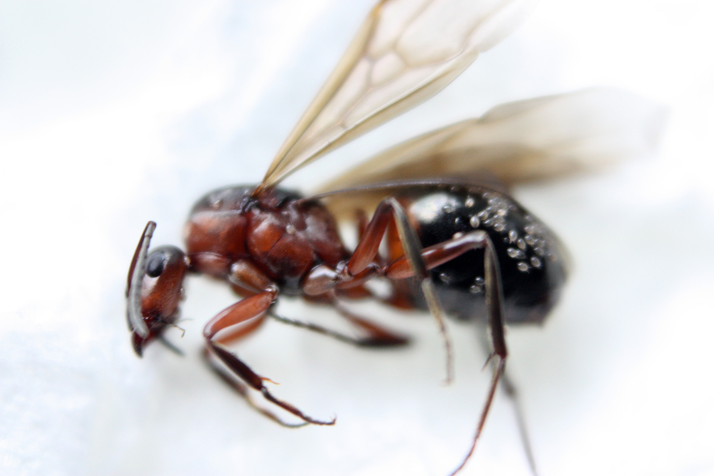 [font=Calibri]Zum Vergleich mal eine Tote geflügelte Ameisenkönigin mit massiven Milbenbefall.[/font]