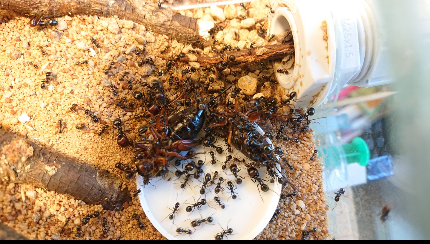 Es laufen in der Arena immer mal wieder 2-4 kleine Messor rum und stöbern & ziehen ihren Po ĂŒber den Sand đ