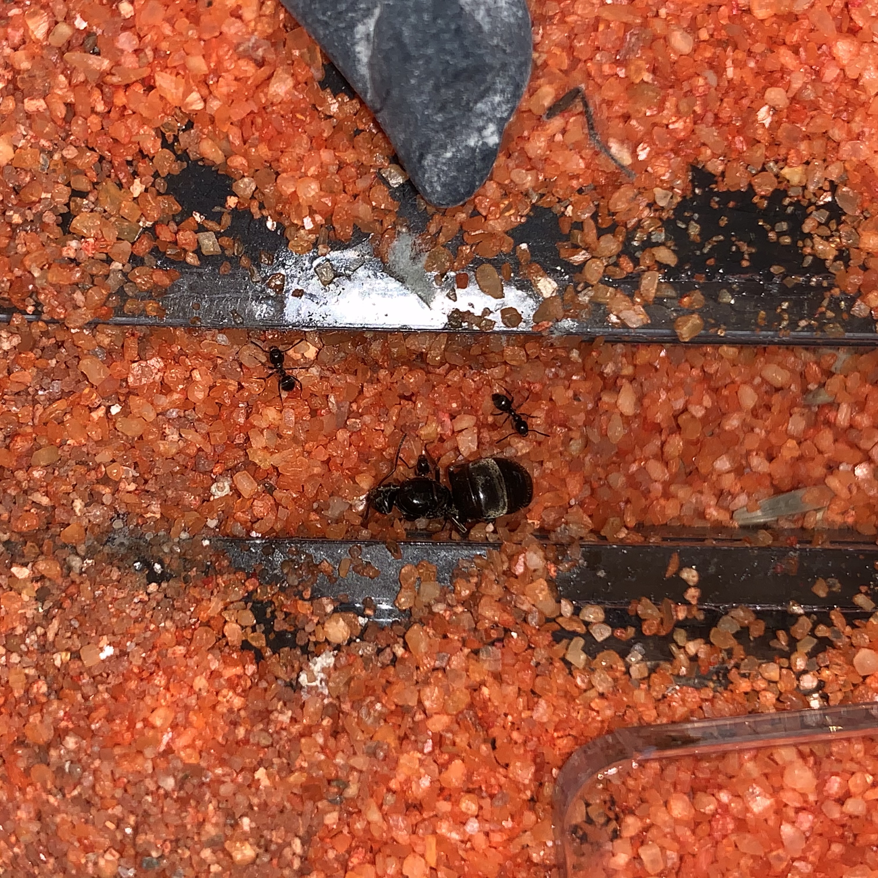 Seit diesem Forfall passiert bei mir nichts mehr. Sie gehen zu keinen Samen, keinem Honig, kein Obst, nichtmal mehr Wasser. Mehrere Ameisen sind schon leider gestorben. Die Kolonie besteht nur noch aus einer