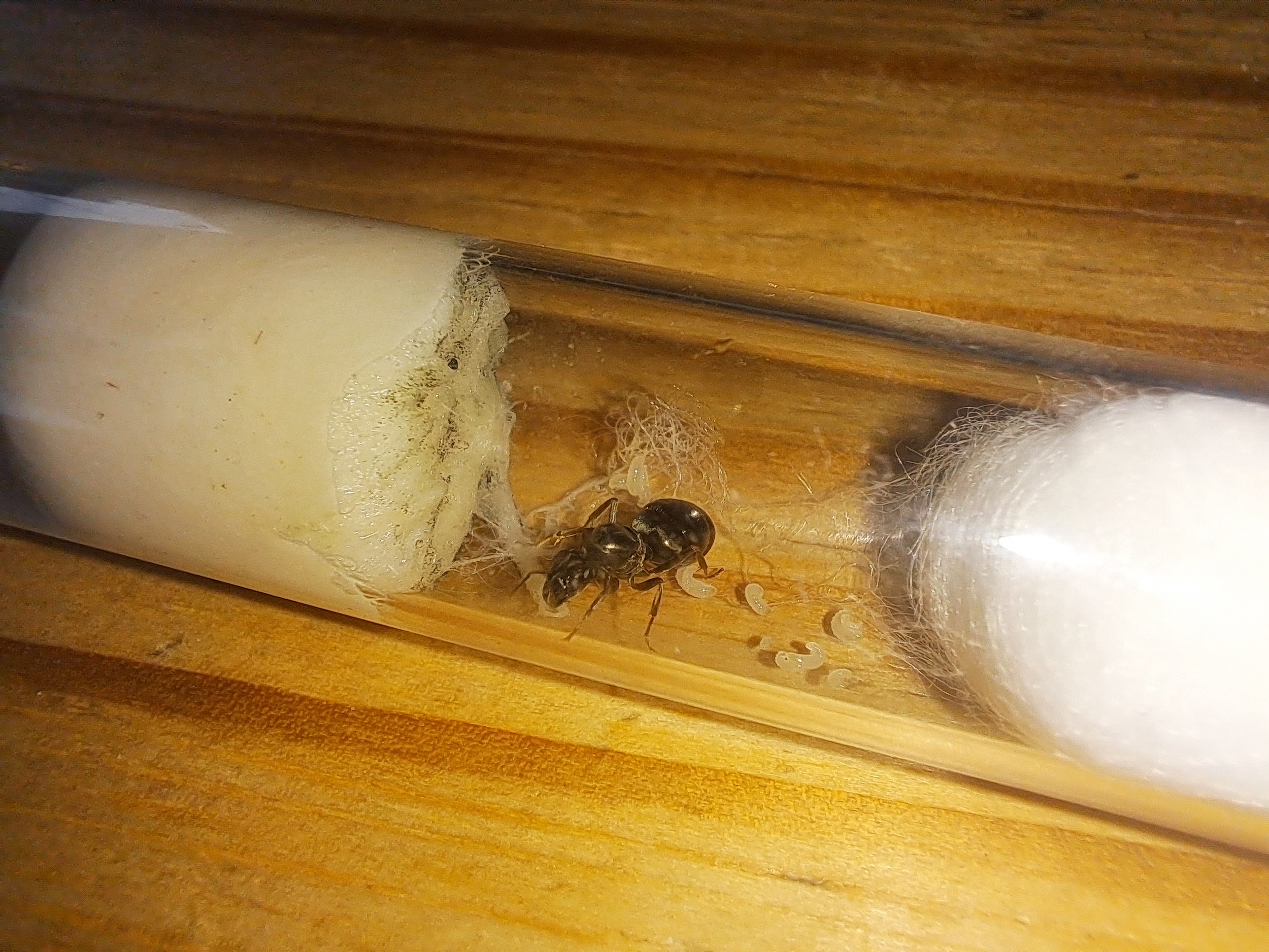 @Zitrus Hier bitte, meine 3 GrĂŒndungskolonien als Abwechslung, haben alle mittlerweile schöne groĂeLarven nur die Lasius flavus hinkt etwas hinterher. Aber trotzdem haben alle einen schönen Haufen Brut und bald sind die ersten Puppen sicher da.