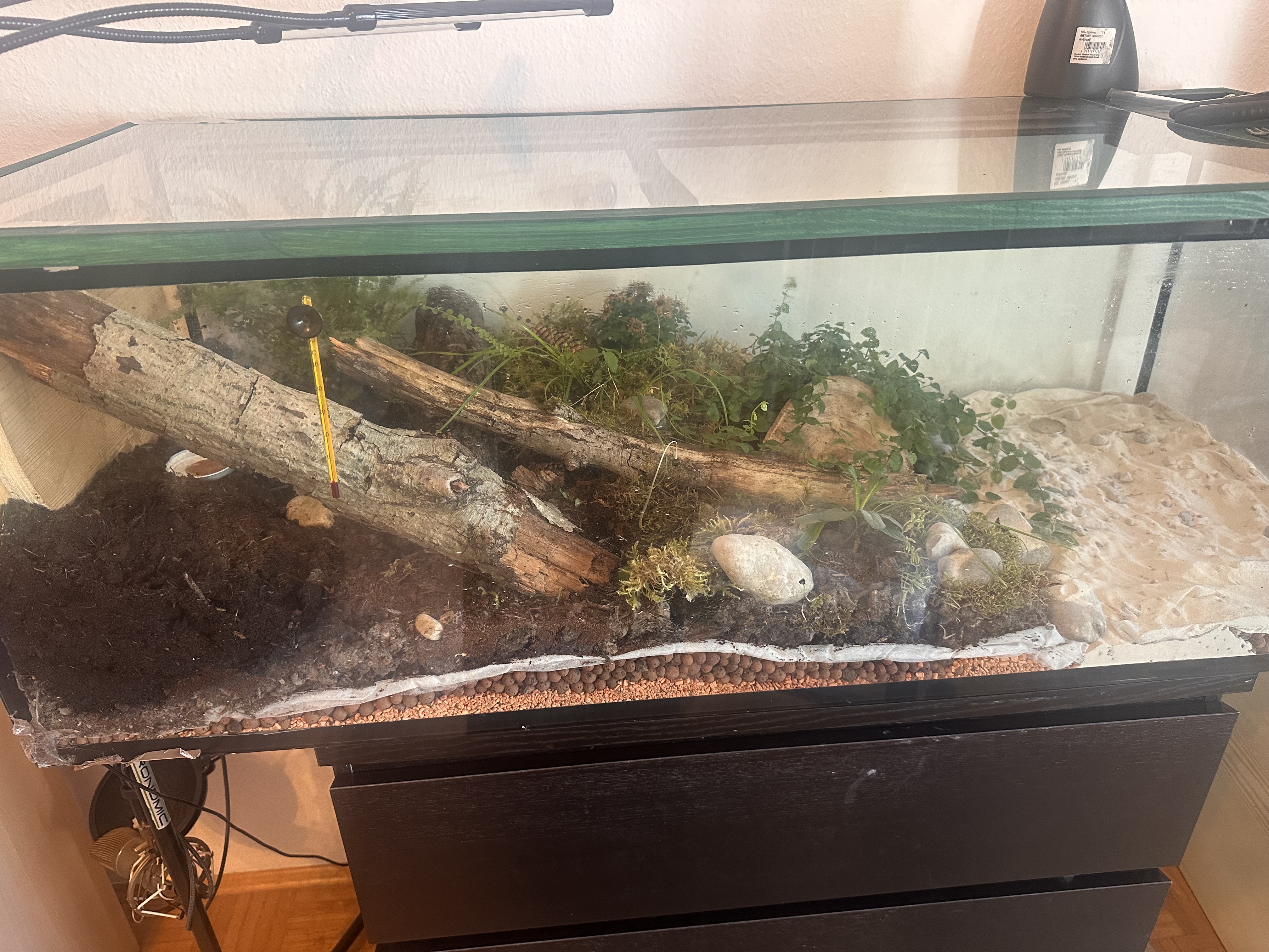 Doch nun merke ich, dass gerade keine Aktivitäten herrschen, ich sehe keine die nach Futter suchen oder sonstiges im Terrarium machen.