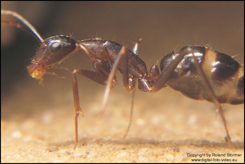 wollte Euch nur mitteilen, dass meine Camponotus barbaricus schon die Winterruhe als beendet erklĂ€rt hat. Anbei mal einige Bilder einer meiner Arbeiterinn. Zur Info: Ich habe eine Königin und zwei Arbeiterinnen. Die am Anfang hier beschriebende - immer umher getragende Puppe - ist inzwischen geschlĂŒpft (kann nicht sagen wann, wegen der Winterruhe).