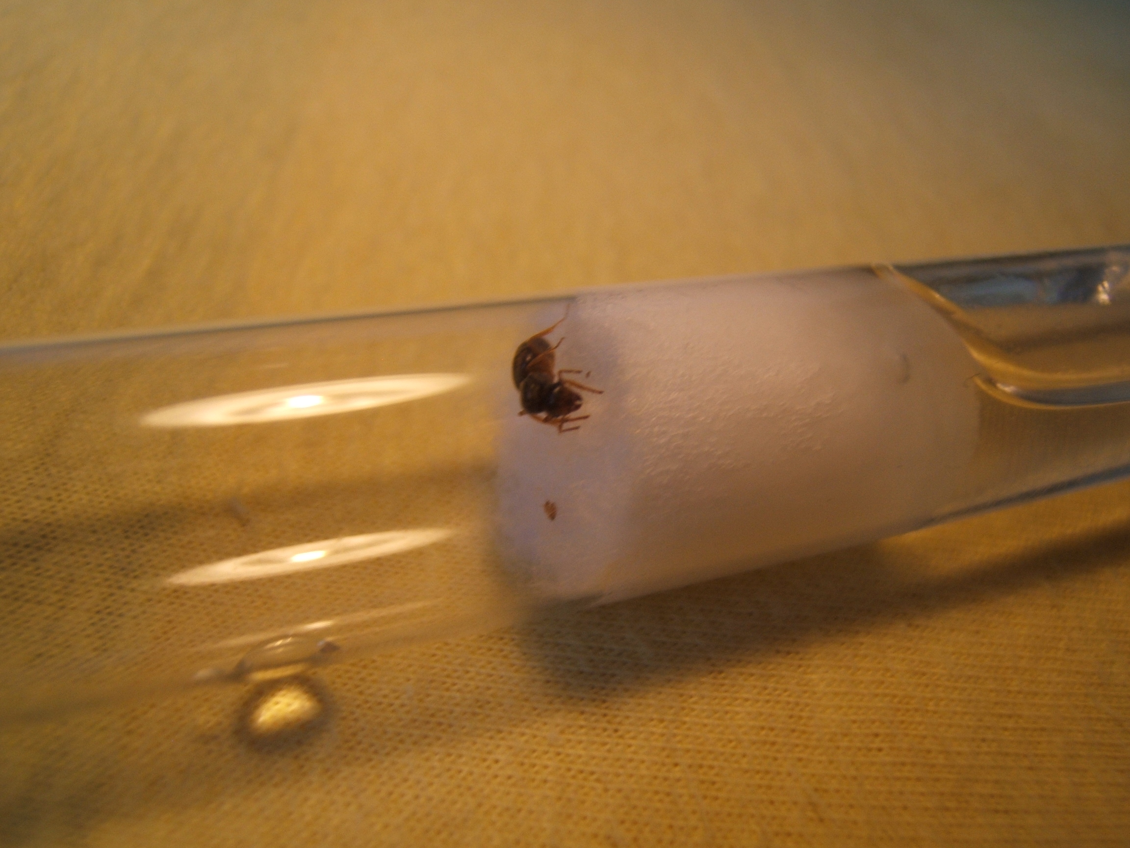 Woran liegt das??Ich habe sie auch schon einpaar mal umziehen lassen weil ich dachte das die Watte mit Wassertank nicht richtig funktioniert.Denke aber nicht das das der Grund ist!Immer wen ich reinschaue sehe ich sie wie sie meist mit dem kopf zur Watte steht und ''Schläft''.Dachte sogar einmal das sie tot sei und drehte das Reagenzglas etwas.Dabei kippte sie um und raffte sich wieder auf.