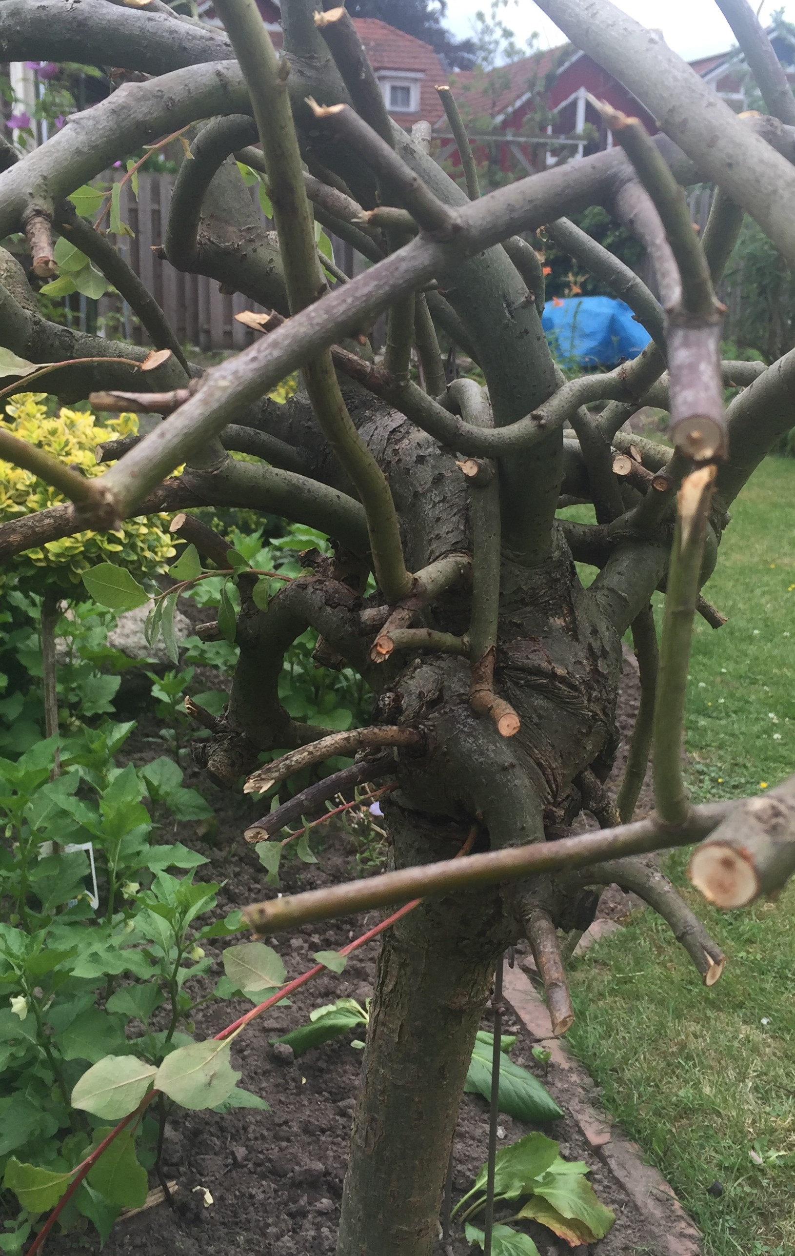 ca. 1,5m hohe Weide mit extrem verknoteten Ästen. Darin lebt eine Kolonie Lasius fuliginosus