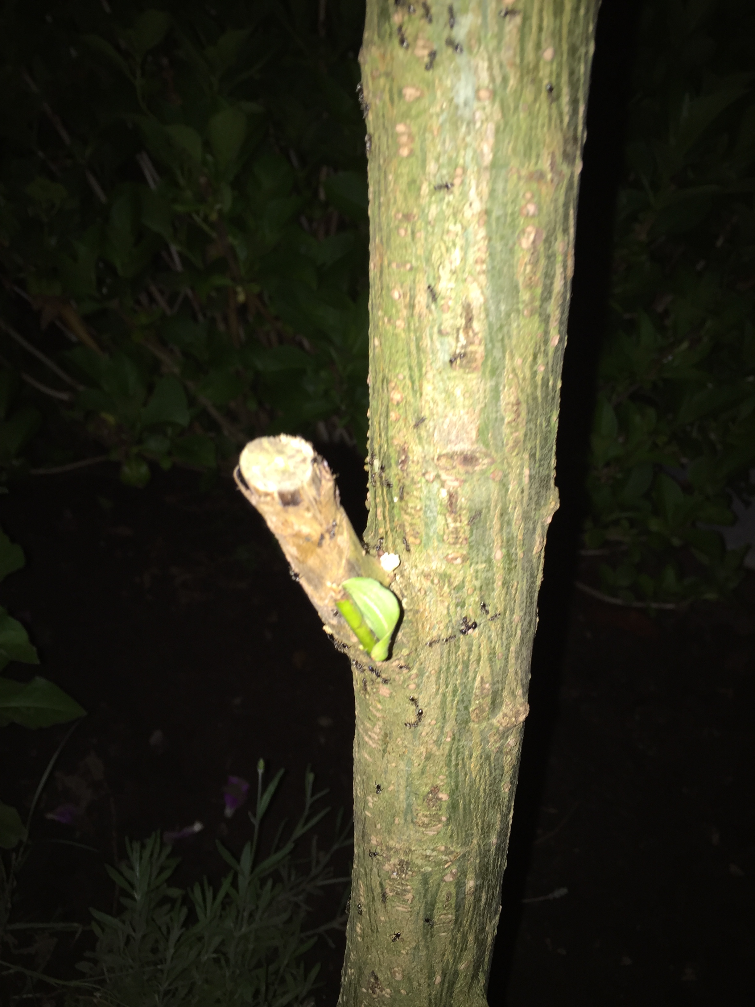 1-2 abgeschnittene Äste dienten als Vorposten für die im Baum ansässige Kolonie.