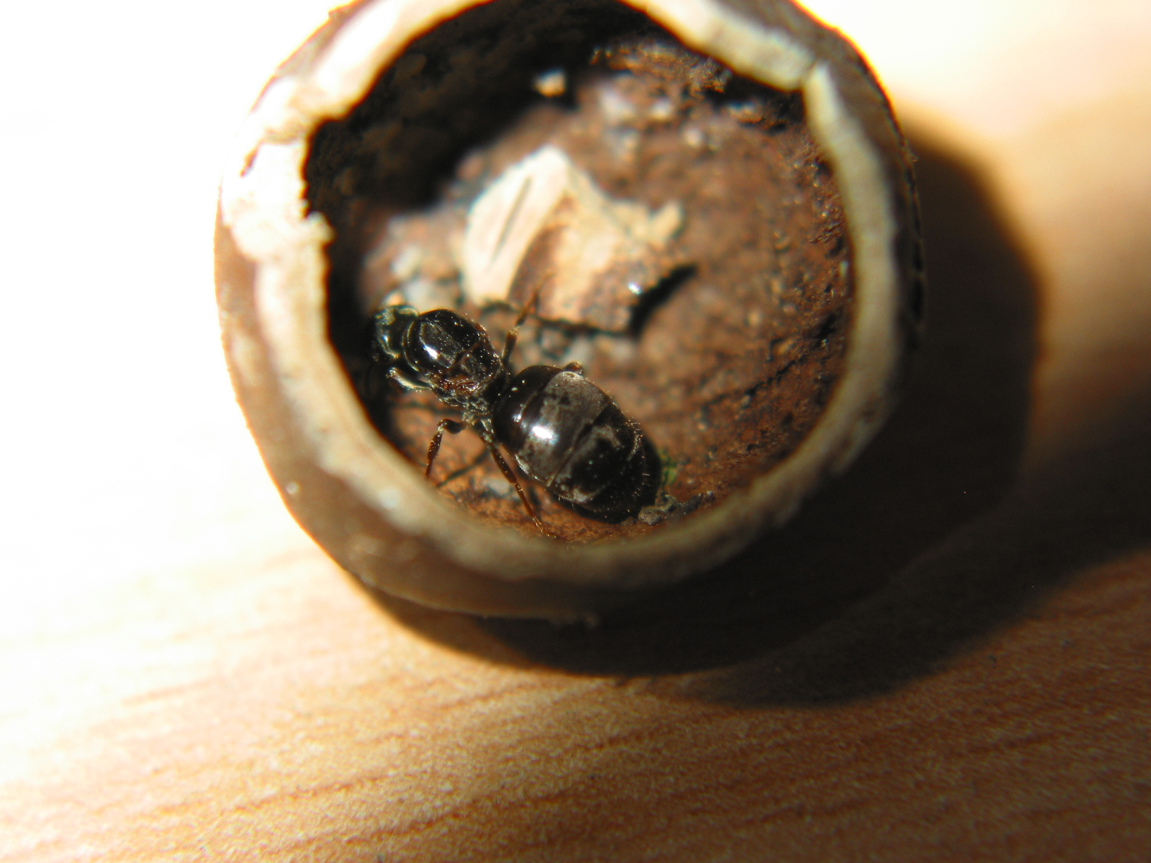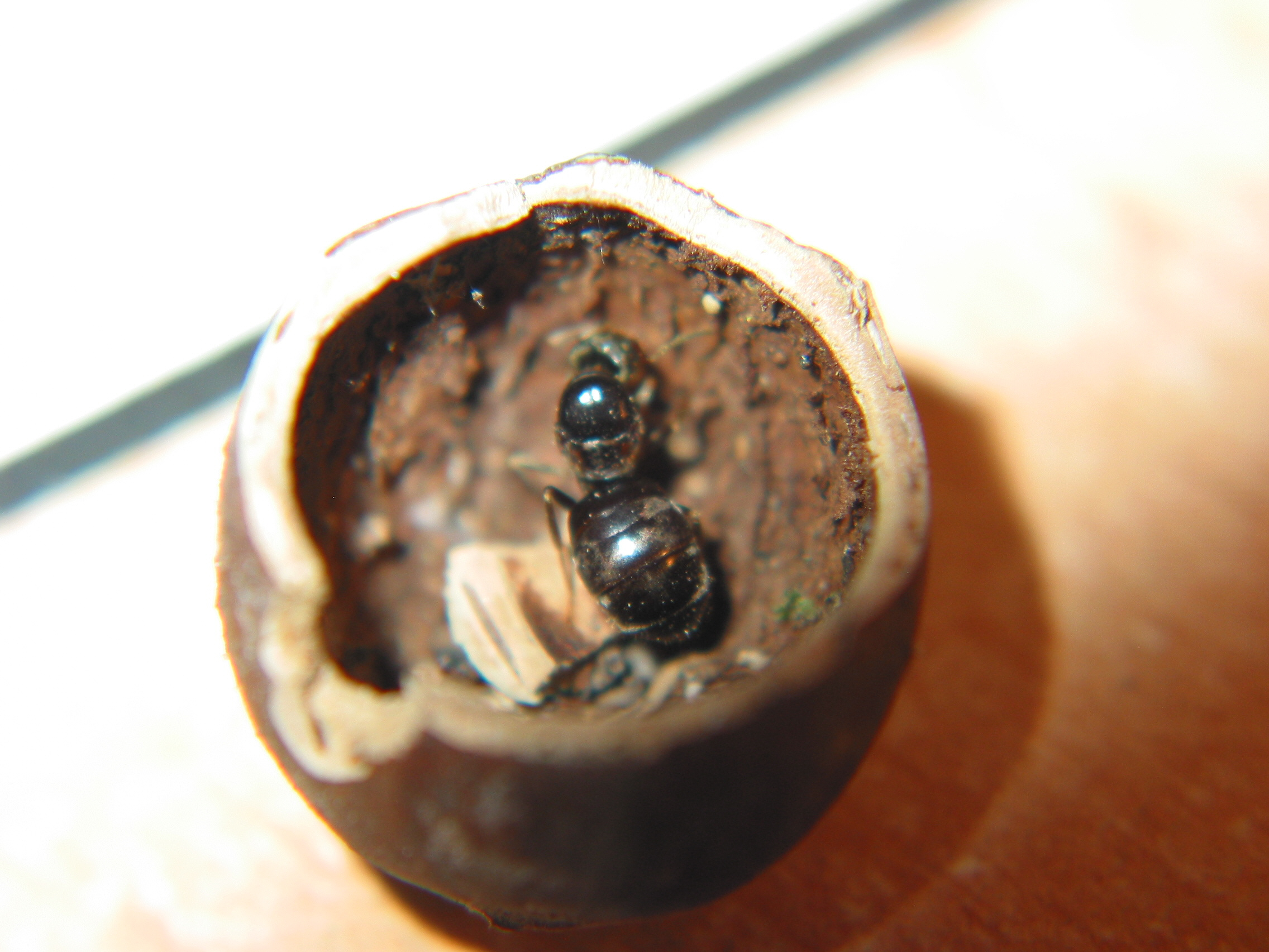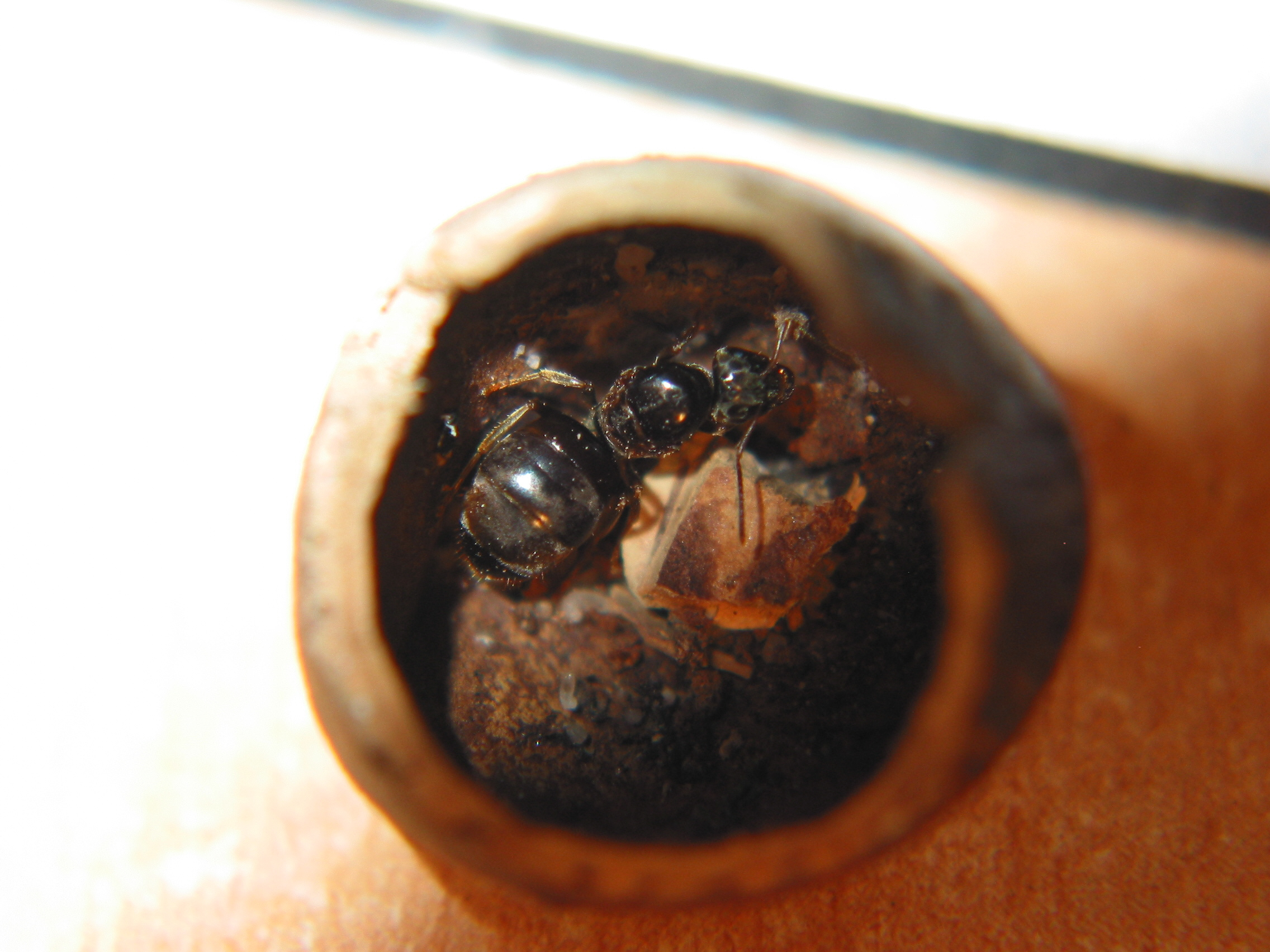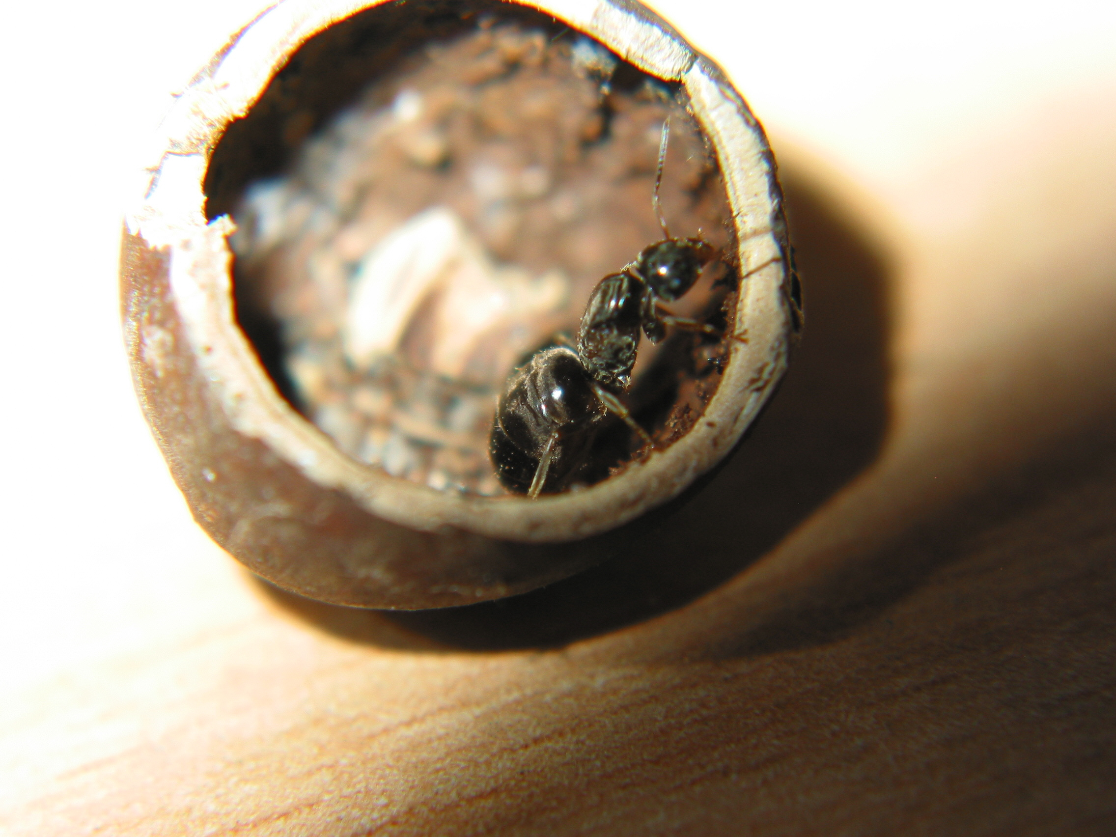 Die Temnothorax-Kolonie besteht aus 50+ Arbeiterinnen und es ist wirklich immer wieder beeindruckend wie klein sie sind (bin ja momentan nur an Camponotus gewohnt). Eine