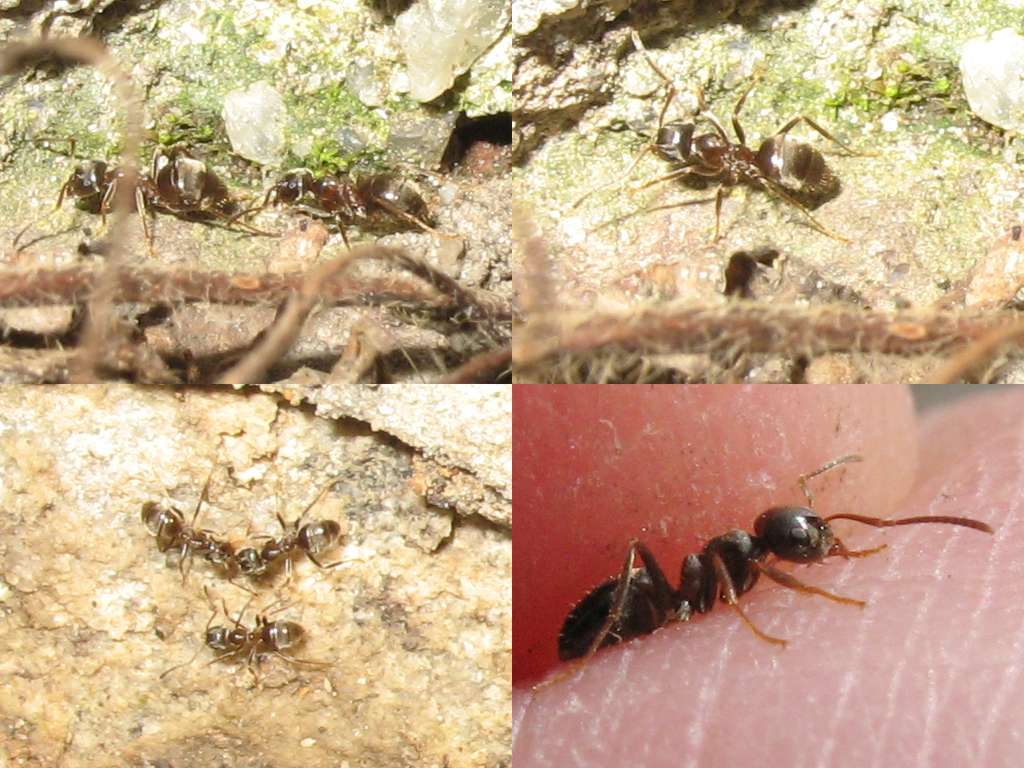 Die zweite Ameise ist wohl eine Lasius niger (Schwarzgraue …), da sie bei der katholischen Kirche herumlief. Ein anderes Bestimmungsmerkmal kann ich nicht erkennen.