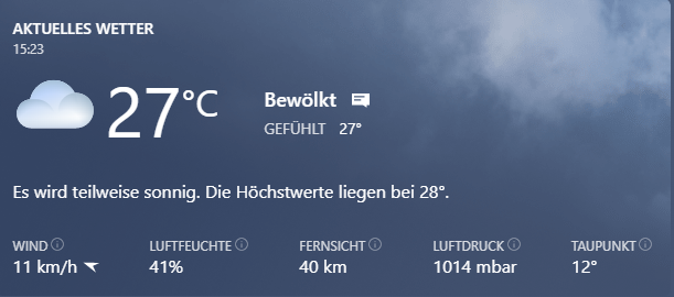 Wetter: ~24°C, schwül, leicht bewölkt, windstill