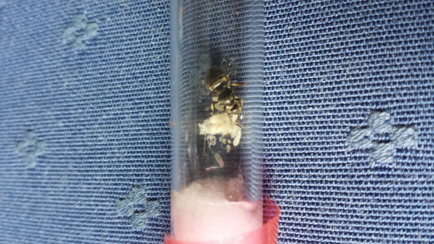 Königin hinein getan. Mit Watte verschlossen und fertig. 5 min vergangen trug sie gleich zwei