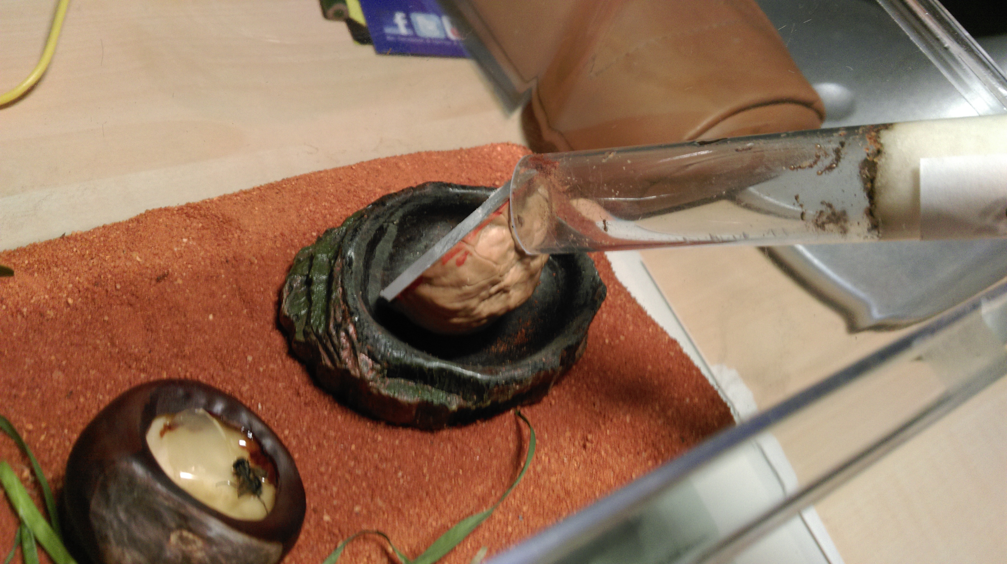 Wie kriege ich die Ameisen aus dem Reagenzglas in die Nusschale?