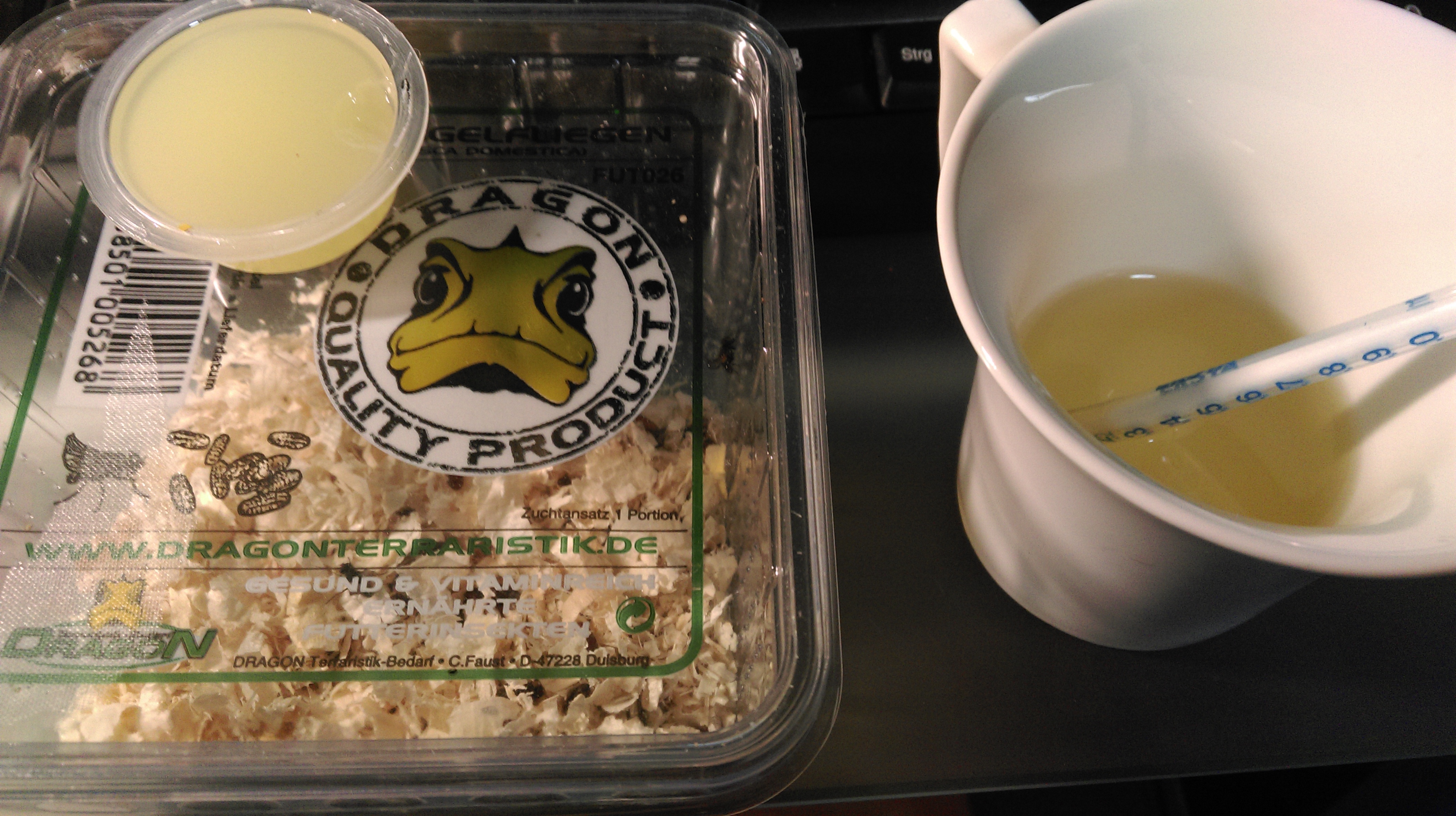 Soll ich ihnen dieses Gelee geben UND die Fliegen und Zuckerlösung?