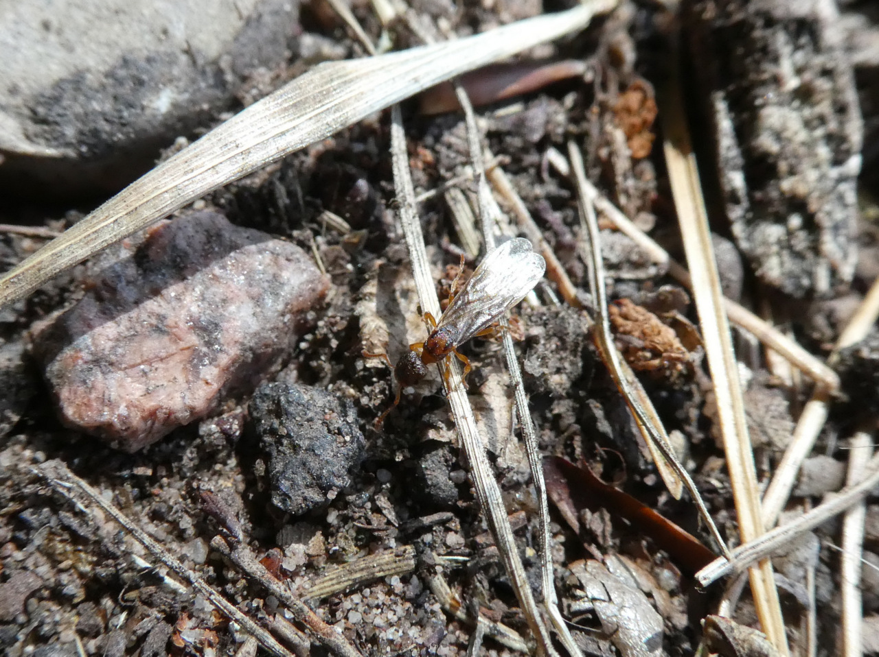 Formica sanguinea gehören zu den wahren Frühschwärmern und es kann durchaus sein, dass ich das Abfliegen der Gynen verpasst habe.