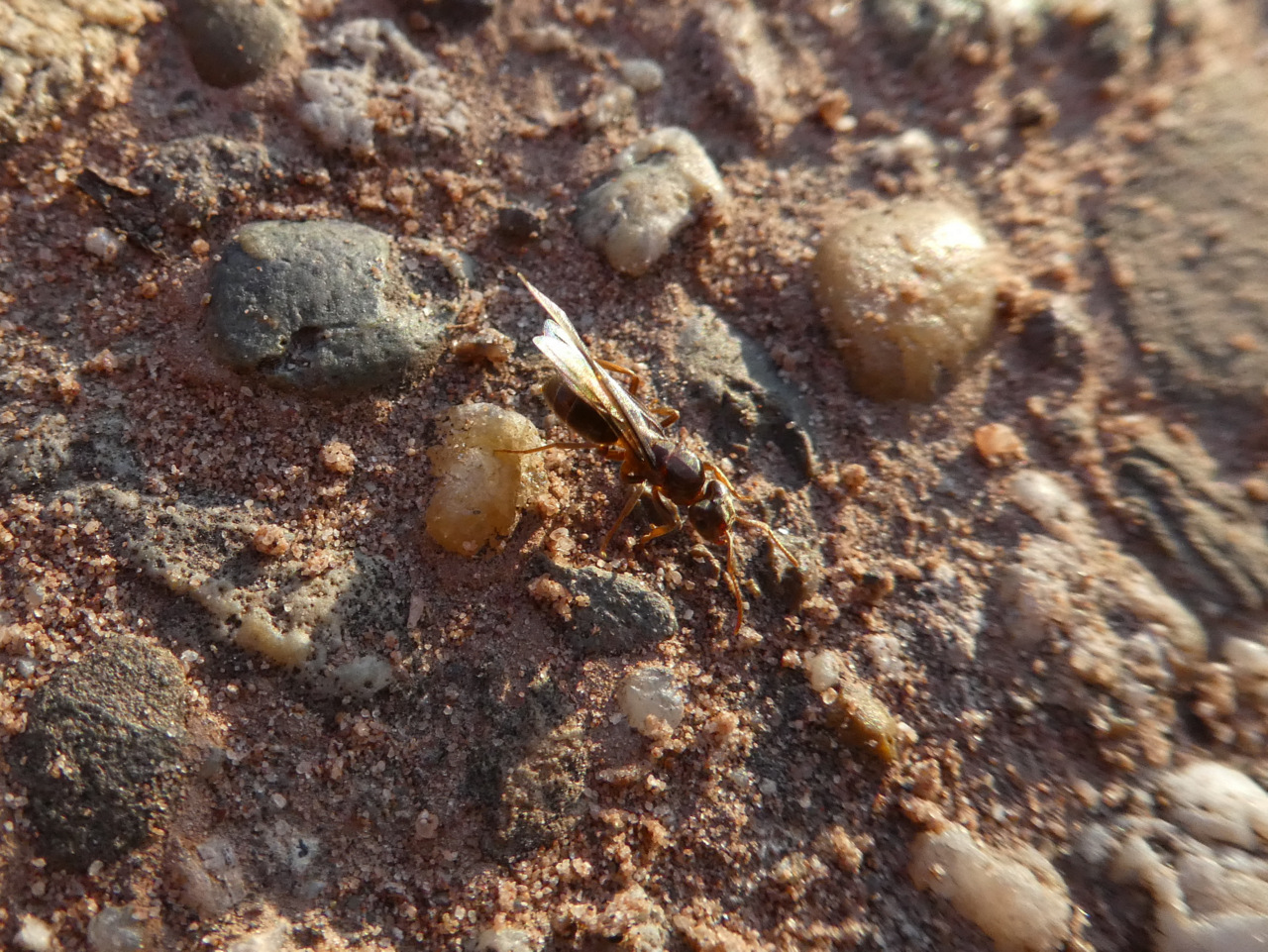 Irgendwann werde ich Raptiformica/Serviformica endlich beim Schwärmen erwischen! Ich bin nicht gerade jemand, der an freien Tagen freiwillig früh aufsteht, aber heute bin ich um 8:00 Uhr in der Früh raus und konnte bei den Räubern immerhin einige Männchen rumlaufen und teilweise davonfliegen sehen. So groß wie die sind, könnte man sie fast für Gynen halten: