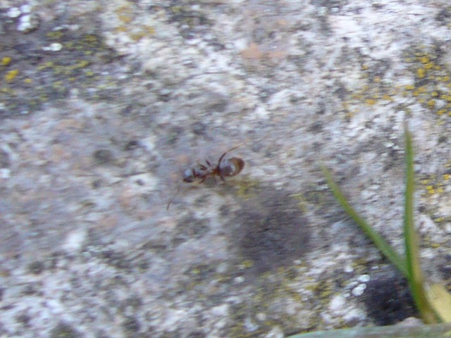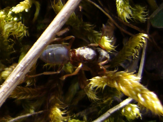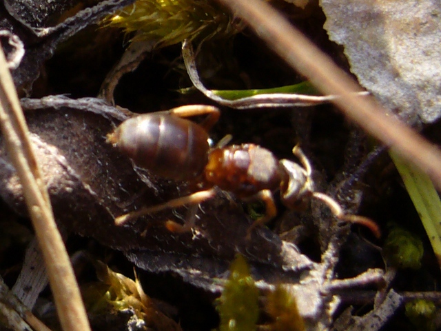 Erste Beobachtung: unbestimmte Art ca. 8mm lang, Aufgrund des relativ großen Thoraxs vermute ich, dass es sich um eine Gyne handelt. Ganz in der Nähe ein zweiter Fund der gleichen Art, jedoch jeweils nur ein einziges Exemplar in näherer Umgebung.