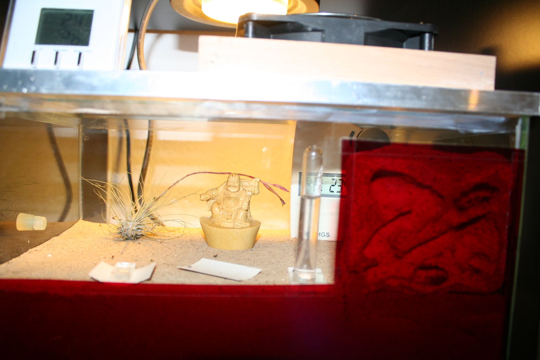 Wie ihr auf dem weiter oben gezeigten Bild seht, hat sich das Nest der Ameisen (recht oben im Ytong) als schwer zugänglich erwiesen. Habe das Ding auch nichtmehr von der Scheibe bekommen (ist dran geklebt).