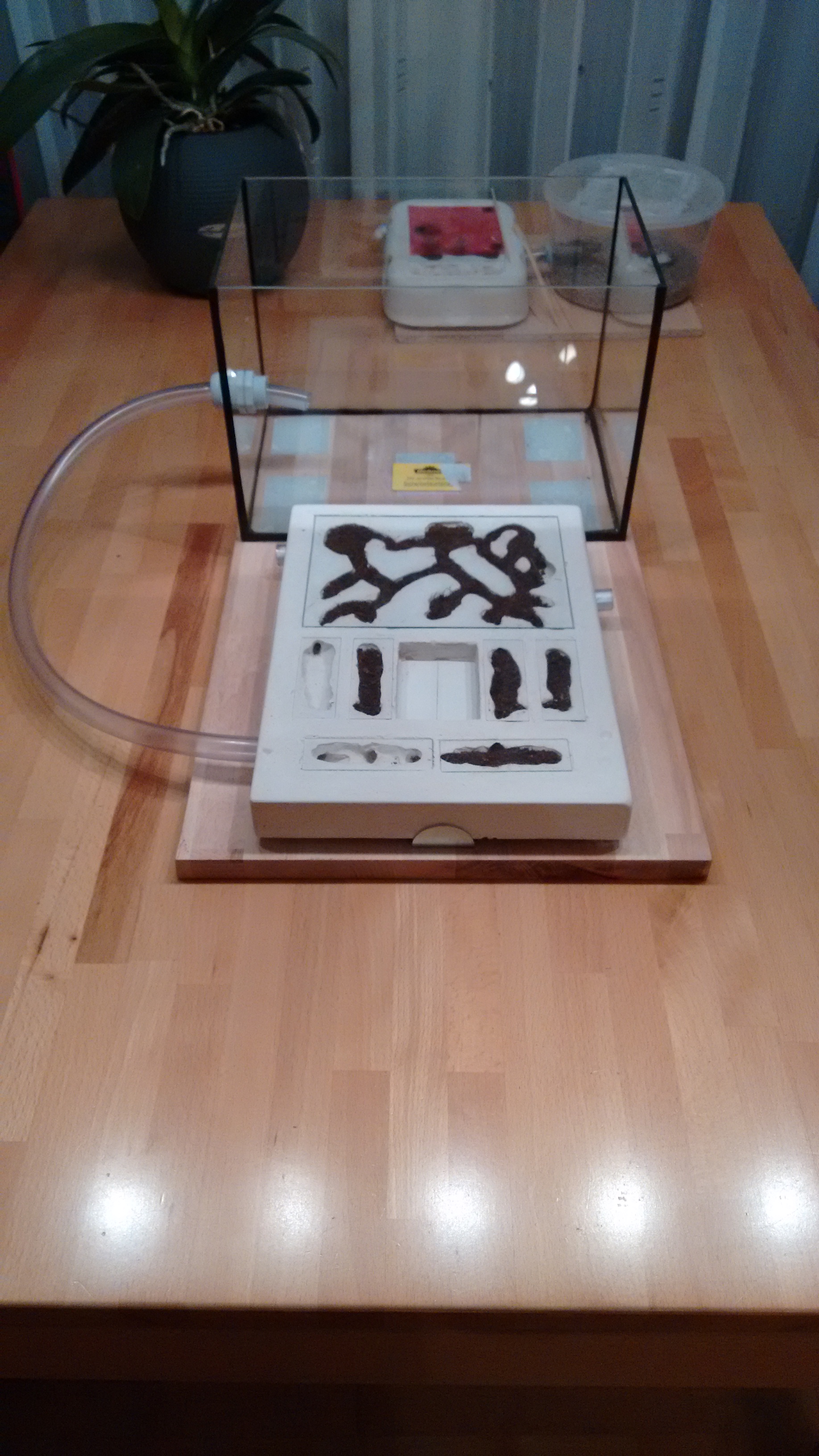 Mein Nest befindet sich unter dem Boden. Finde, dass es besser aussieht, hat aber auch einige Nachteile. Komme z.B. nicht mehr an das Nest heran und kann es nur mit Aufwand erweitern. Bei einer Freundin von mir habe ich ein externes Gipsnest gegossen (siehe Bild). Kannst die Ameisen meiner Meinung nach besser beobachten und leichter erweitern bzw. auch mal öffnen. Würde mein nächstes auch so machen. Ist recht einfach herzustellen und nicht so ne sauerei wie den Ytong zu bearbeiten.