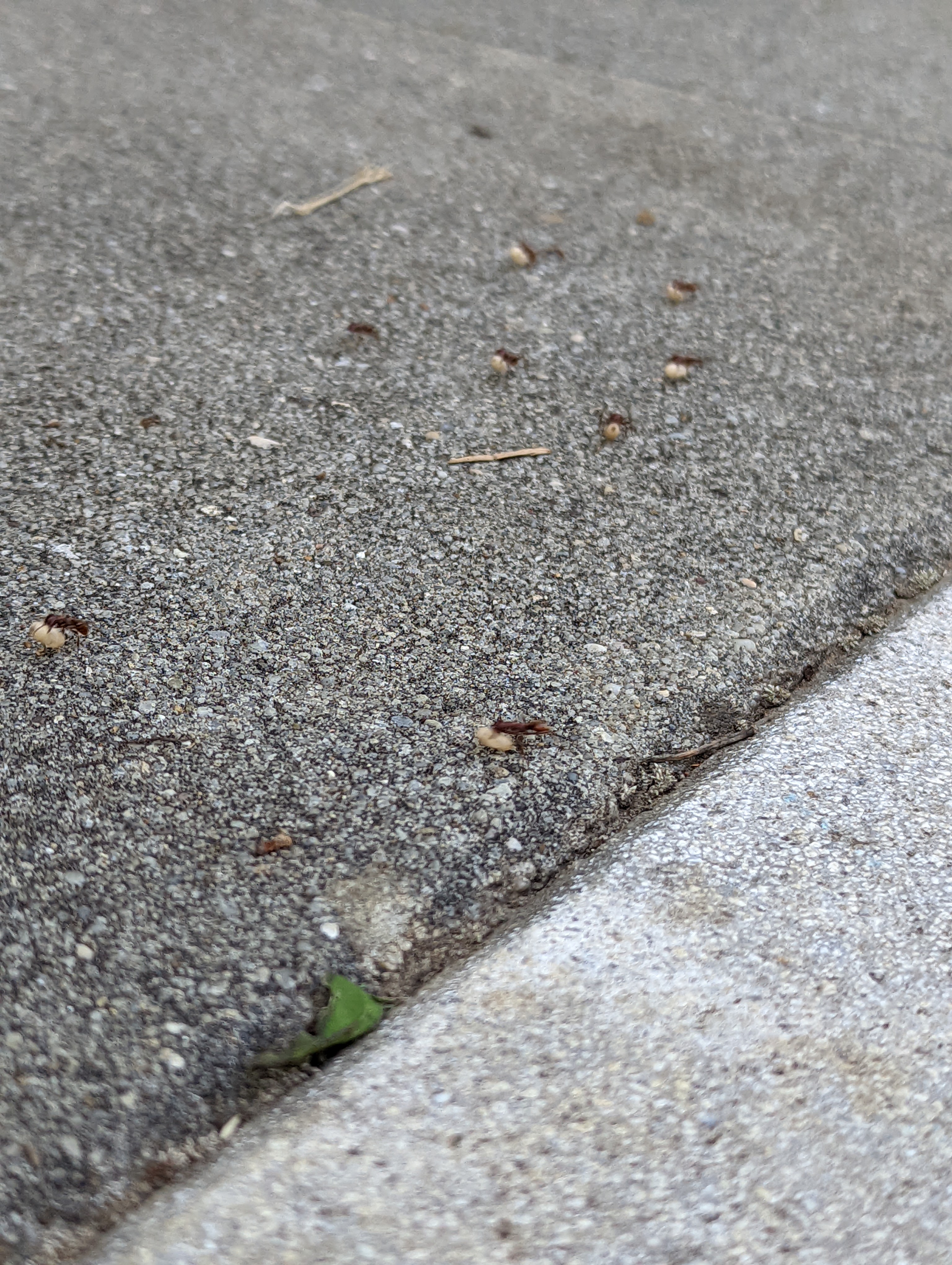 Wollten gerade vom Schrebergarten nach Hause fahren und habe noch etwas aufgeräumt und dann sehe ich auf der Terrasse eine sehr lange Ameisenstraße. Wusste sofort was los war, da wir auf der Terrasse nie eine Ameisenstraße gesehen haben.